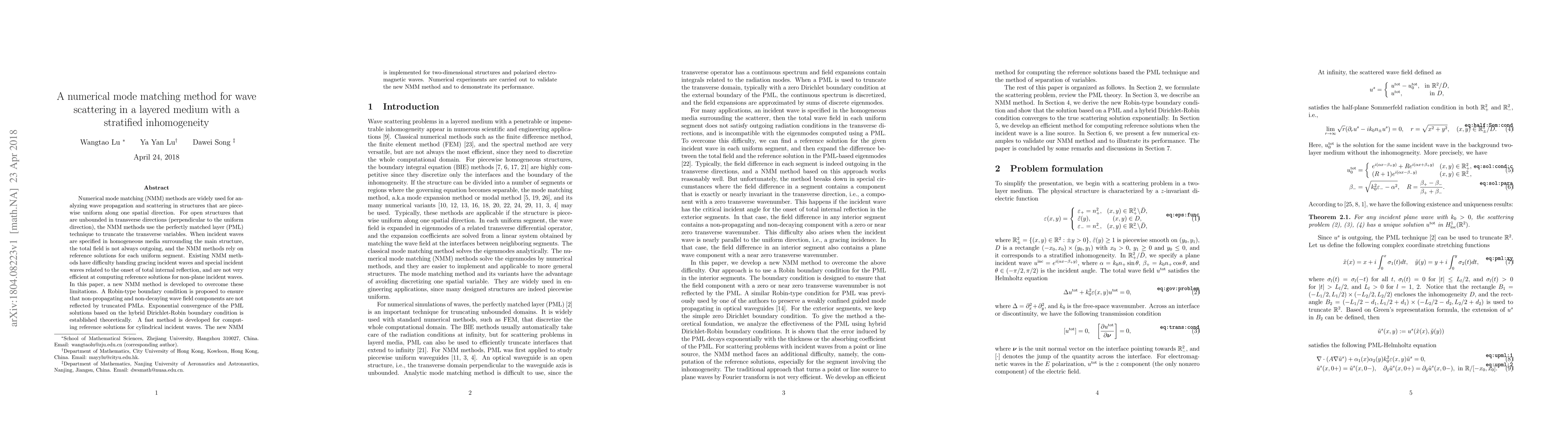 Numerical mode matching (NMM) methods are widely used for analyzing wave propagation and scattering in structures that are piece-wise uniform along one spatial direction. For open structures that are unbounded in transverse directions (perpendicular to the uniform direction), the NMM methods use the perfectly matched layer (PML) technique to truncate the transverse variables. When incident waves are specified in homogeneous media surrounding the main structure, the total field is not always outgoing, and the NMM methods rely on reference solutions for each uniform segment. Existing NMM methods have difficulty handing gracing incident waves and special incident waves related to the onset of total internal reflection, and are not very efficient at computing reference solutions for non-plane incident waves. In this paper, a new NMM method is developed to overcome these limitations. A Robin-type boundary condition is proposed to ensure that non-propagating and non-decaying wave field components are not reflected by truncated PMLs. Exponential convergence of the PML solutions based on the hybrid Dirichlet-Robin boundary condition is established theoretically. A fast method is developed for computing reference solutions for cylindrical incident waves. The new NMM is implemented for two-dimensional structures and polarized electromagnetic waves. Numerical experiments are carried out to validate the new NMM method and to demonstrate its performance.