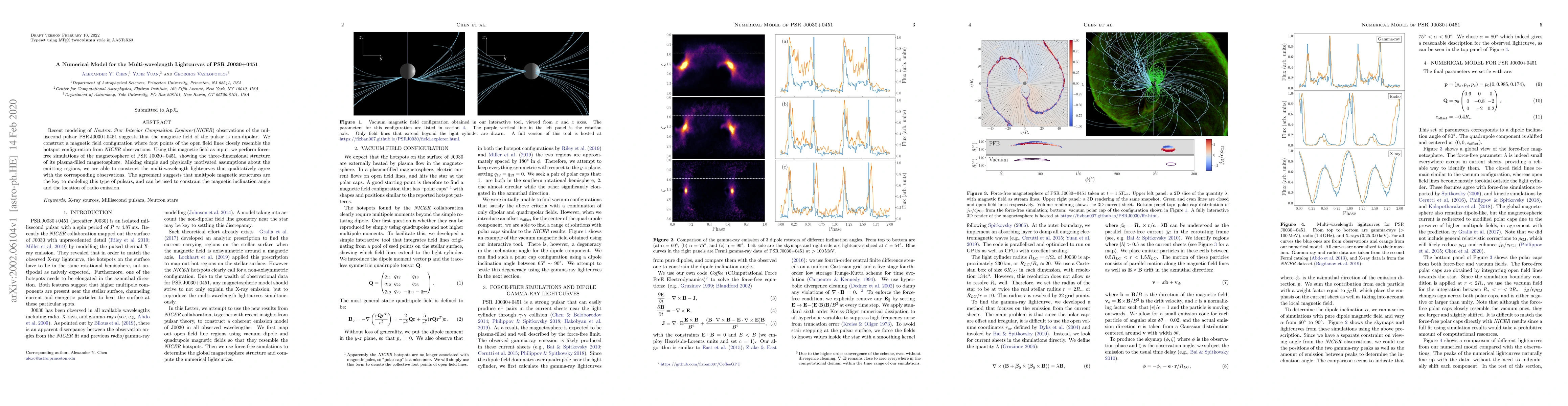 This paper develops a numerical model to simulate the multi-wavelength lightcurves of PSR J0030+0451, suggesting non-dipolar magnetic fields. The model's agreement with NICER observations supports the use of multipole magnetic structures to constrain the pulsar's magnetic inclination and emission regions.
