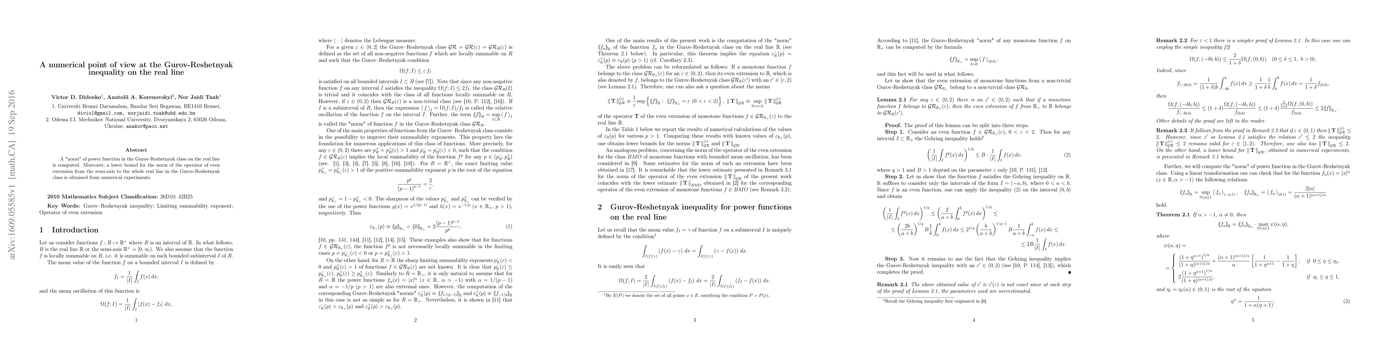 This paper computes the "norm" of power functions within the Gurov-Reshetnyak class on the real line and derives a lower bound for the norm of the even extension operator from numerical experiments.