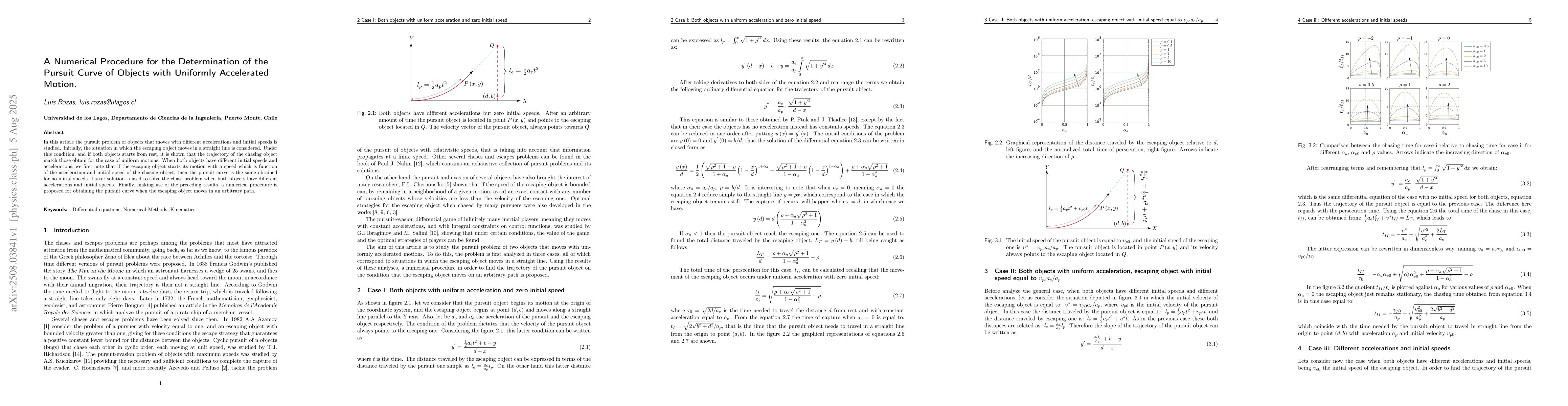 In this article the pursuit problem of objects that moves with different accelerations and initial speeds is studied. Initially, the situation in which the escaping object moves in a straight line is considered. Under this condition, and if both objects starts from rest, it is shown that the trajectory of the chasing object match those obtain for the case of uniform motions. When both objects have different initial speeds and accelerations, we first note that if the escaping object starts its motion with a speed which is function of the acceleration and initial speed of the chasing object, then the pursuit curve is the same obtained for no initial speeds. Latter solution is used to solve the chase problem when both objects have different accelerations and initial speeds. Finally, making use of the preceding results, a numerical procedure is proposed for obtaining the pursuit curve when the escaping object moves in an arbitrary path.