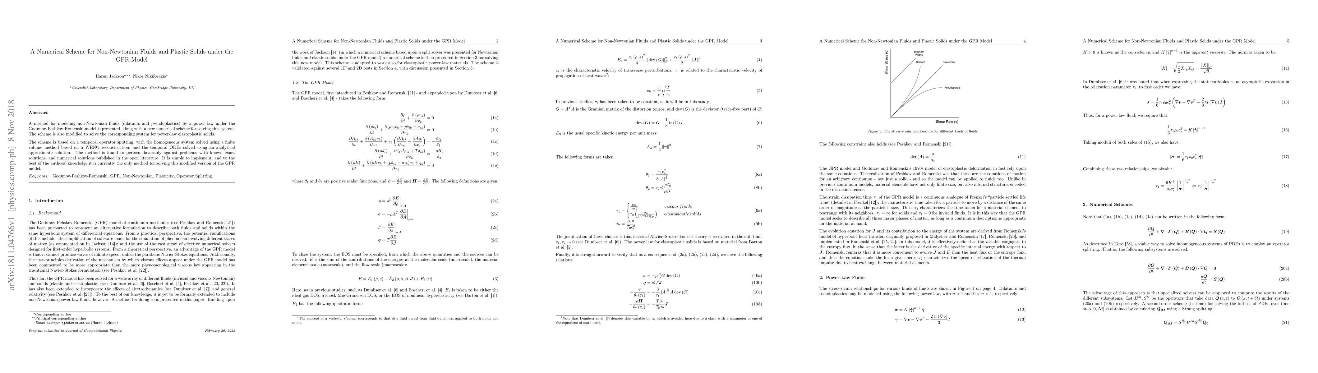 A method for modelling non-Newtonian fluids (dilatants and pseudoplastics) by a power law under the Godunov-Peshkov-Romenski model is presented, along with a new numerical scheme for solving this system. The scheme is also modified to solve the corresponding system for power-law elastoplastic solids. The scheme is based on a temporal operator splitting, with the homogeneous system solved using a finite volume method based on a WENO reconstruction, and the temporal ODEs solved using an analytical approximate solution. The method is found to perform favorably against problems with known exact solutions, and numerical solutions published in the open literature. It is simple to implement, and to the best of the authors' knowledge it is currently the only method for solving this modified version of the GPR model.