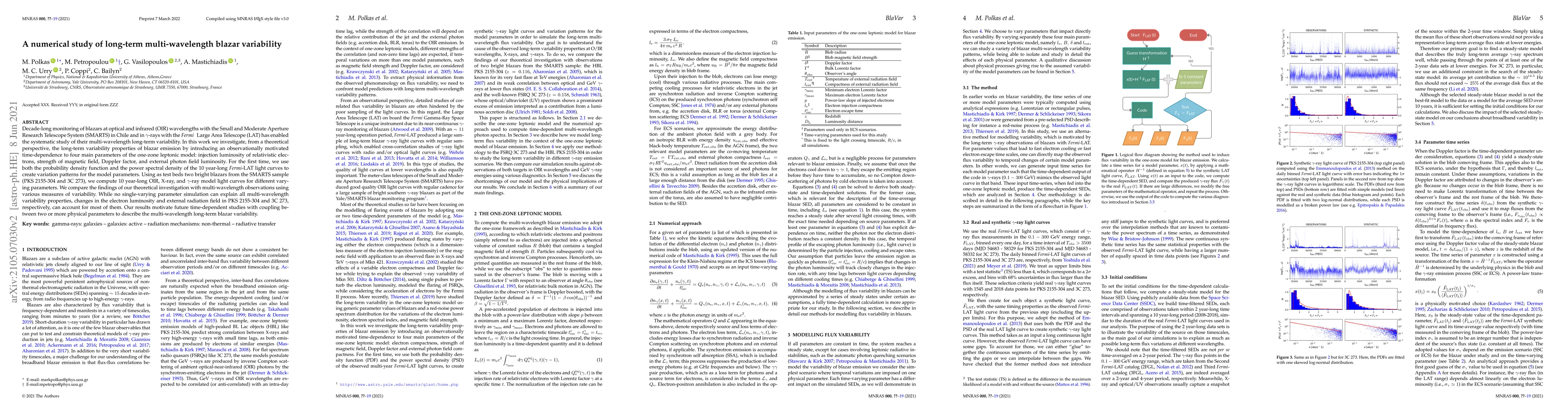 This study investigates the long-term variability of blazars using a one-zone leptonic model, introducing time-dependent variations in four key parameters. The findings suggest that changes in electron luminosity and external radiation fields can largely explain observed variability, motivating further studies on coupled parameter variations.