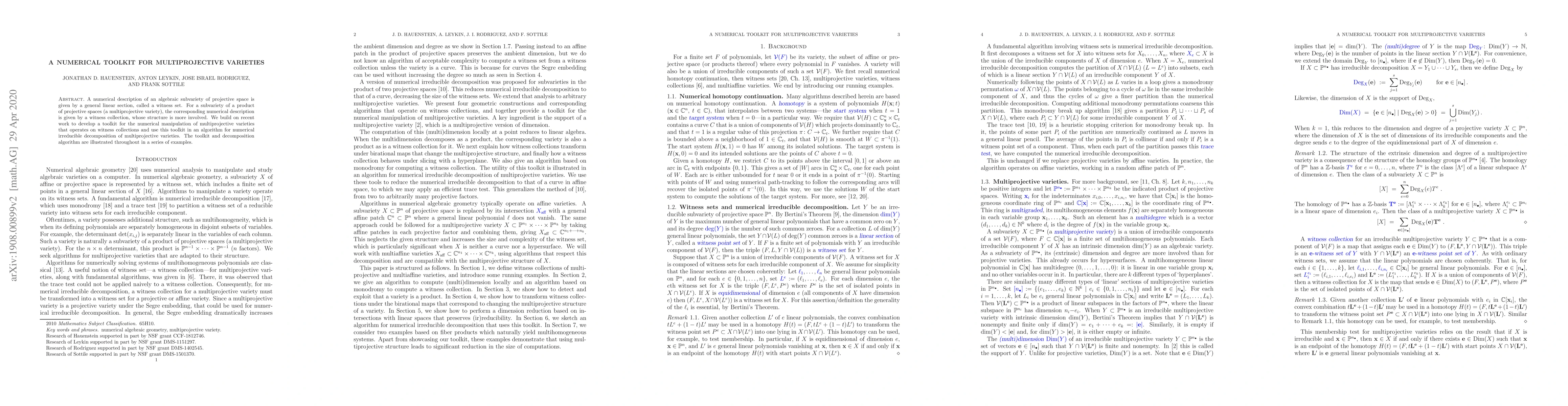 This paper develops a numerical toolkit for manipulating witness collections of multiprojective varieties, enabling numerical irreducible decomposition, and demonstrates its utility through various examples. The toolkit facilitates the analysis of algebraic subvarieties in products of projective spaces.