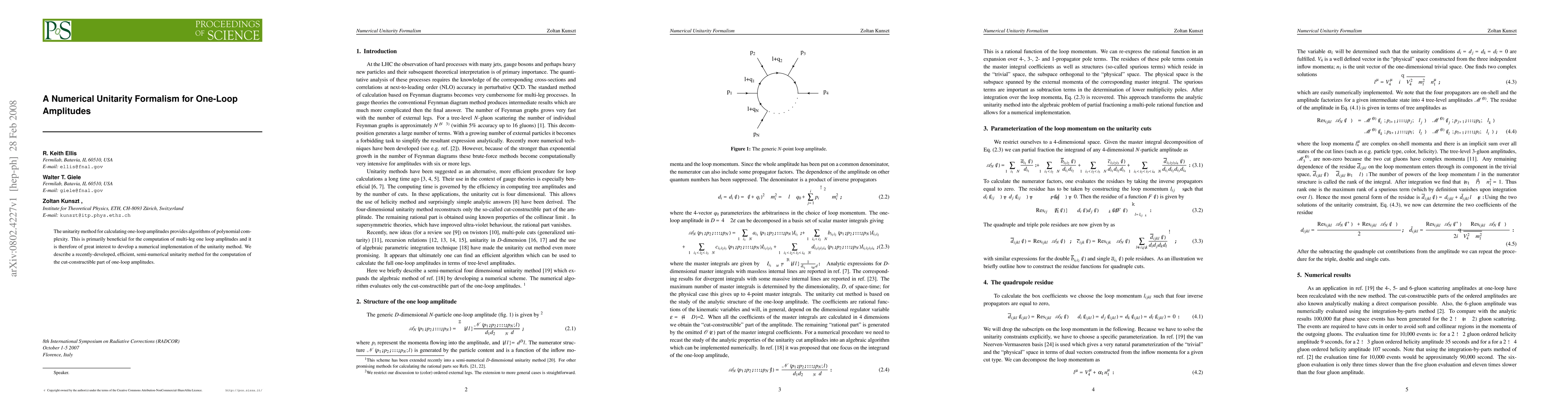 This paper introduces a numerical unitarity method for efficiently calculating one-loop amplitudes, offering polynomial complexity algorithms, particularly useful for multi-leg computations. The authors present a semi-numerical approach to compute the cut-constructible part of these amplitudes.