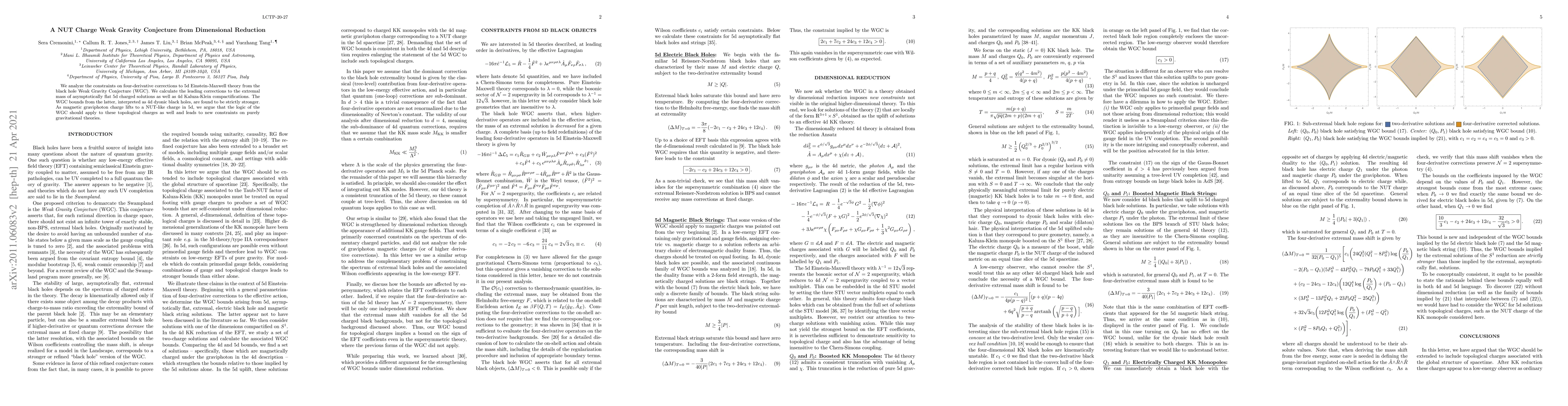 This paper investigates four-derivative corrections to 5d Einstein-Maxwell theory through the lens of the Weak Gravity Conjecture (WGC), finding stronger WGC constraints from 4d Kaluza-Klein compactifications. It argues that the WGC logic extends to NUT-like charges, imposing new constraints on purely gravitational theories.