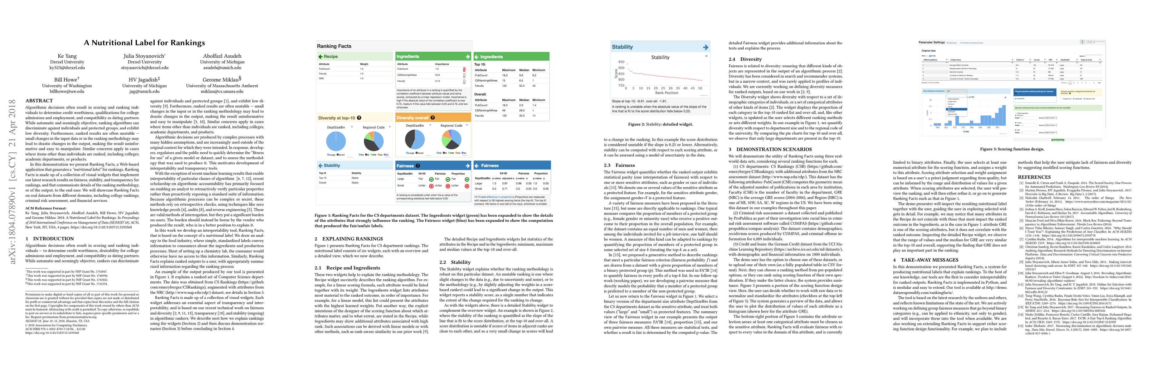 Researchers created a tool called Ranking Facts to provide transparency and fairness in rankings, identifying areas where algorithms can discriminate against individuals and groups.