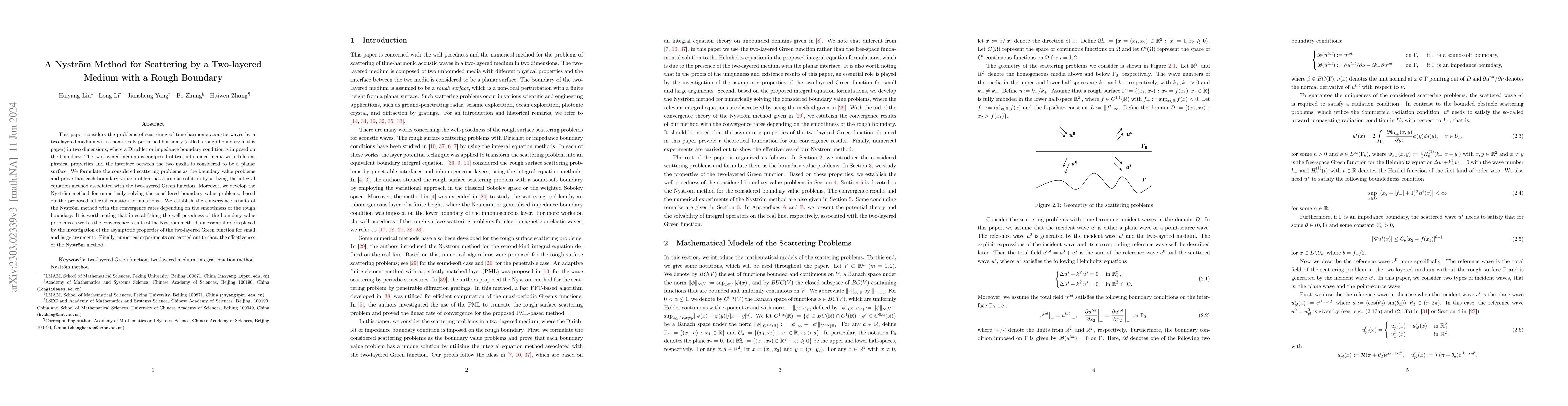 This paper develops a Nyström method to solve scattering problems for time-harmonic acoustic waves in a two-layered medium with a rough boundary, proving unique solutions and establishing convergence rates based on boundary smoothness. Numerical experiments demonstrate the method's effectiveness.