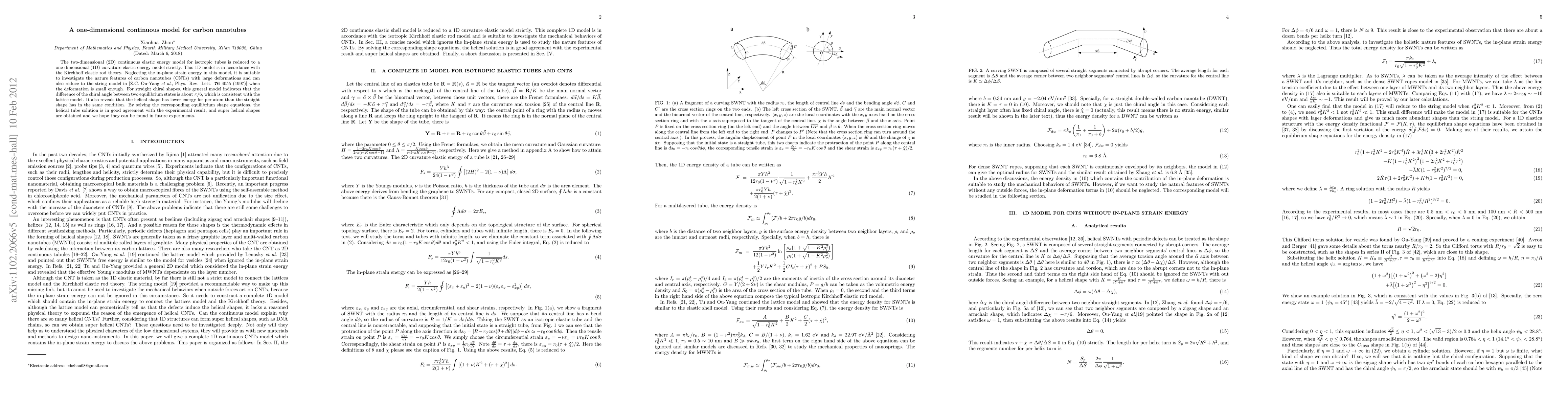 Researchers created a 1D model for carbon nanotubes based on a 2D elastic model, finding that helical shapes have lower energy than straight shapes in the same conditions and offering insight into the nature of CNTs with large deformations.