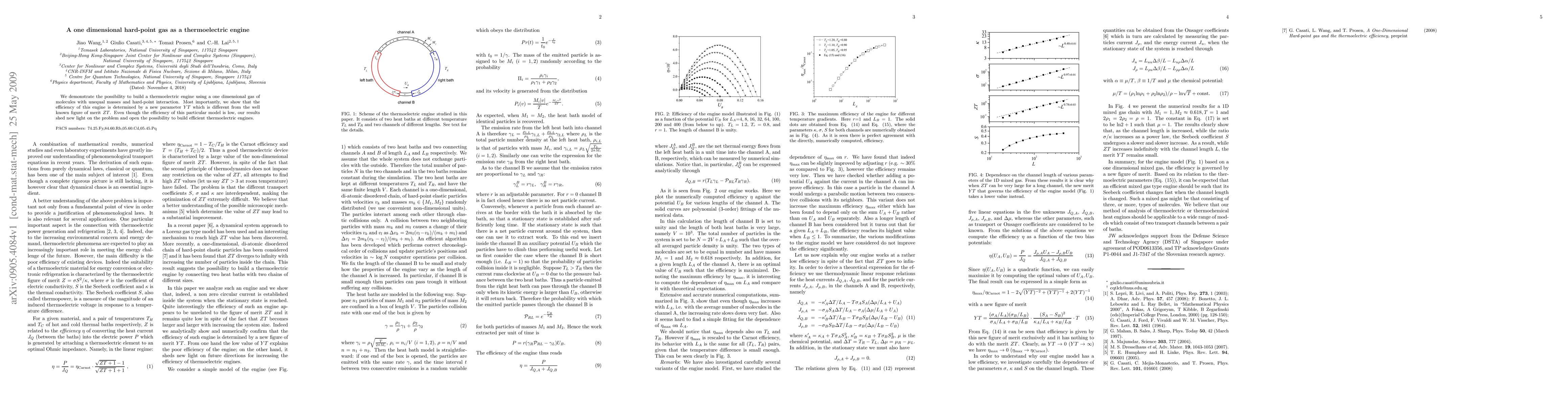 The research presents a one-dimensional hard-point gas model of molecules with unequal masses as a thermoelectric engine, introducing a new efficiency parameter YT distinct from the traditional ZT. Despite the model's current low efficiency, it offers fresh insights and potential for creating efficient thermoelectric engines.