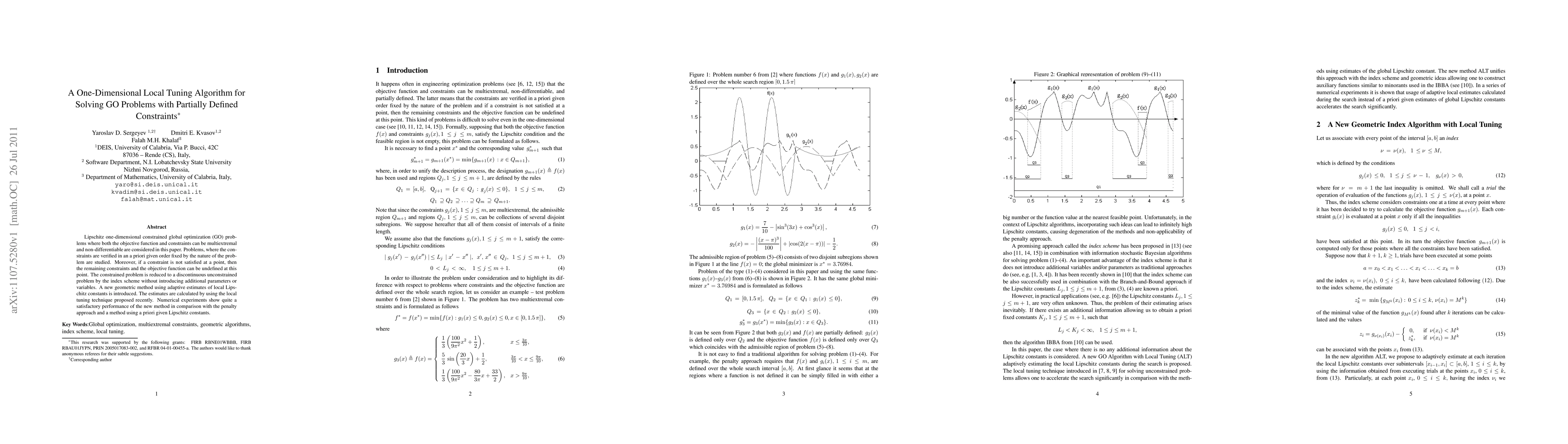 This paper proposes a one-dimensional local tuning algorithm to solve Lipschitz constrained global optimization problems with partially defined constraints. The method transforms the constrained problem into a discontinuous unconstrained problem and employs adaptive local Lipschitz constant estimates for effective optimization, demonstrating satisfactory performance in numerical experiments.