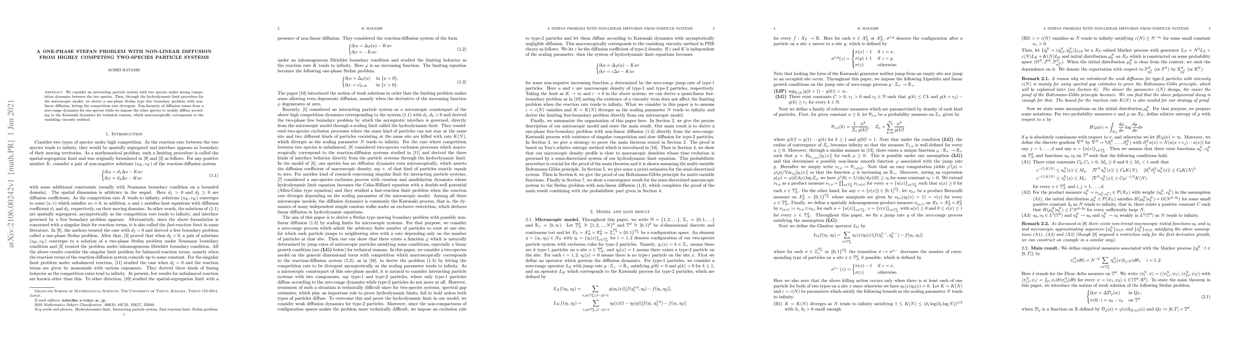 We consider an interacting particle system with two species under strong competition dynamics between the two species. Then, through the hydrodynamic limit procedure for the microscopic model, we derive a one-phase Stefan type free boundary problem with non-linear diffusion, letting the competition rate divergent. Non-linearity of diffusion comes from a zero-range dynamics for one species while we impose the other species to weakly diffuse according to the Kawasaki dynamics for technical reasons, which macroscopically corresponds to the vanishing viscosity method.