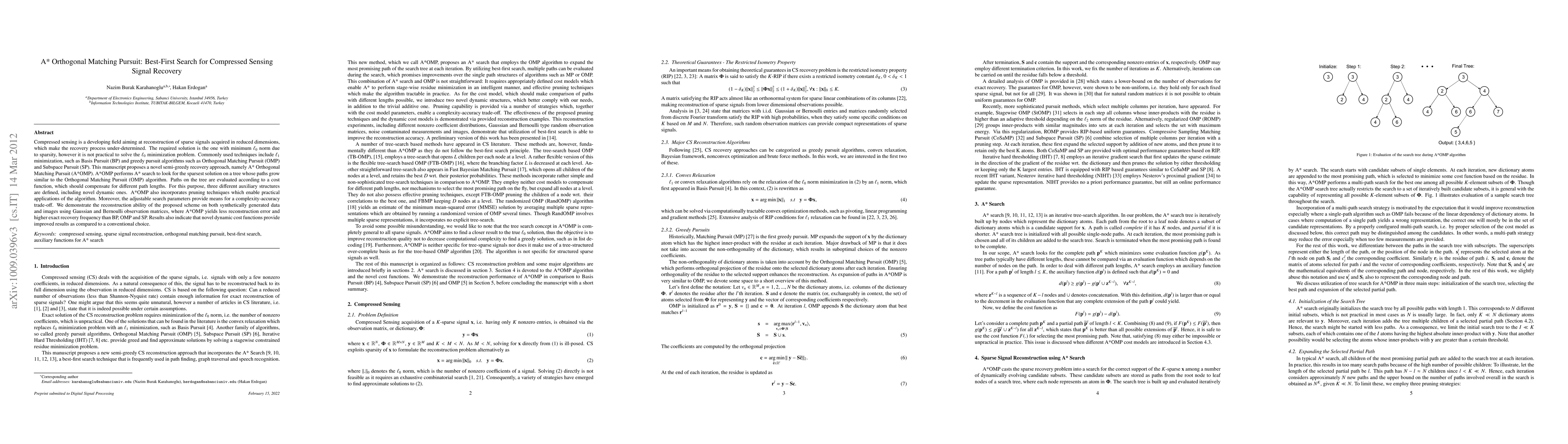This paper introduces A* Orthogonal Matching Pursuit (A*OMP), a novel semi-greedy algorithm for compressed sensing signal recovery, which employs A* search to find sparse solutions. A*OMP outperforms Basis Pursuit, OMP, and SP in reconstruction error and recovery frequency, especially with dynamic cost functions.