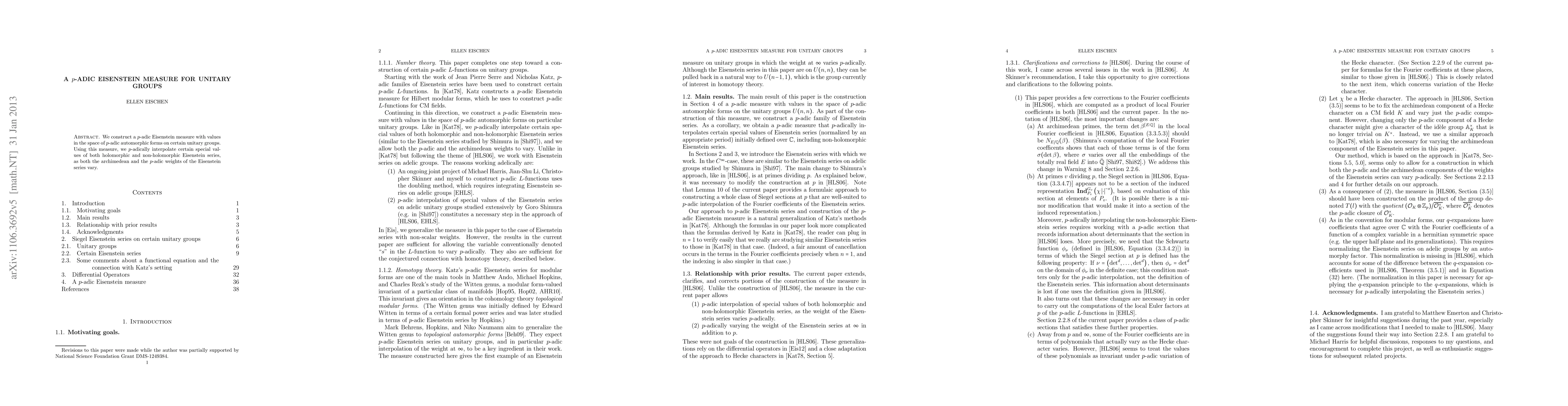 This paper constructs a p-adic Eisenstein measure for unitary groups, enabling the p-adic interpolation of special values of holomorphic and non-holomorphic Eisenstein series with varying archimedean and p-adic weights.