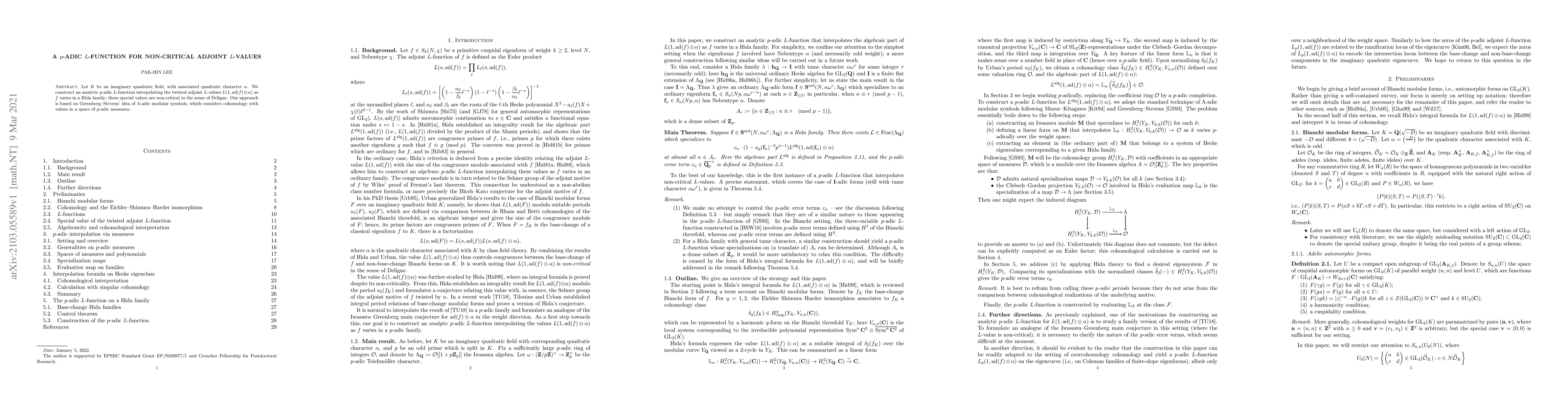 This work contributes to the understanding of p-adic L-functions, which are crucial in number theory, especially in the study of modular forms and their arithmetic properties.