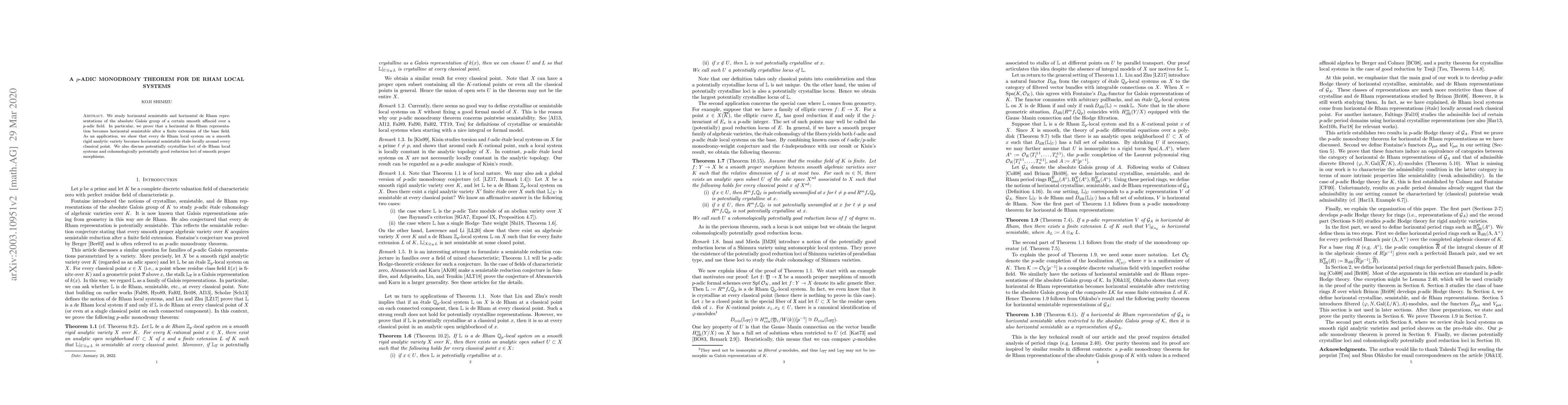 The paper proves that horizontal de Rham representations of the Galois group of a p-adic field become horizontal semistable after a finite extension, and demonstrates that every de Rham local system on a smooth rigid analytic variety retains this property etale locally around classical points. Additionally, it explores potentially crystalline and cohomologically potentially good reduction loci.