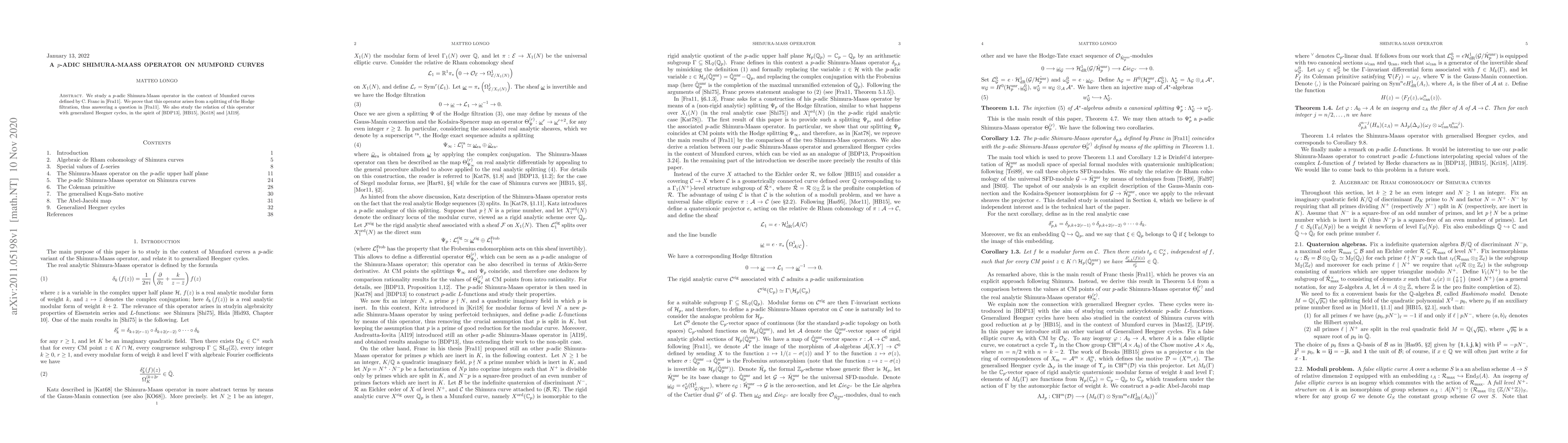 This paper investigates a p-adic Shimura-Maass operator on Mumford curves, proving its origin from a splitting of the Hodge filtration. It also explores its connection to generalized Heegner cycles, inspired by Bertolini-Darmon-Prasanna and Brooks.