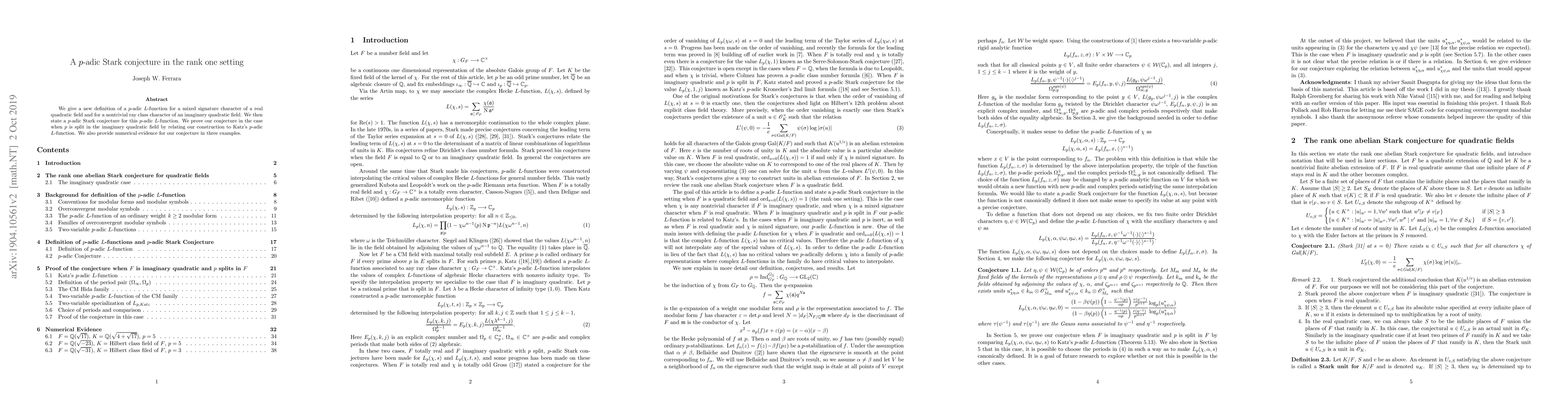This paper introduces a new $p$-adic $L$-function for mixed signature characters and proves a $p$-adic Stark conjecture for it when $p$ is split in the imaginary quadratic field, using Katz's $p$-adic $L$-function, and provides numerical evidence for three examples.