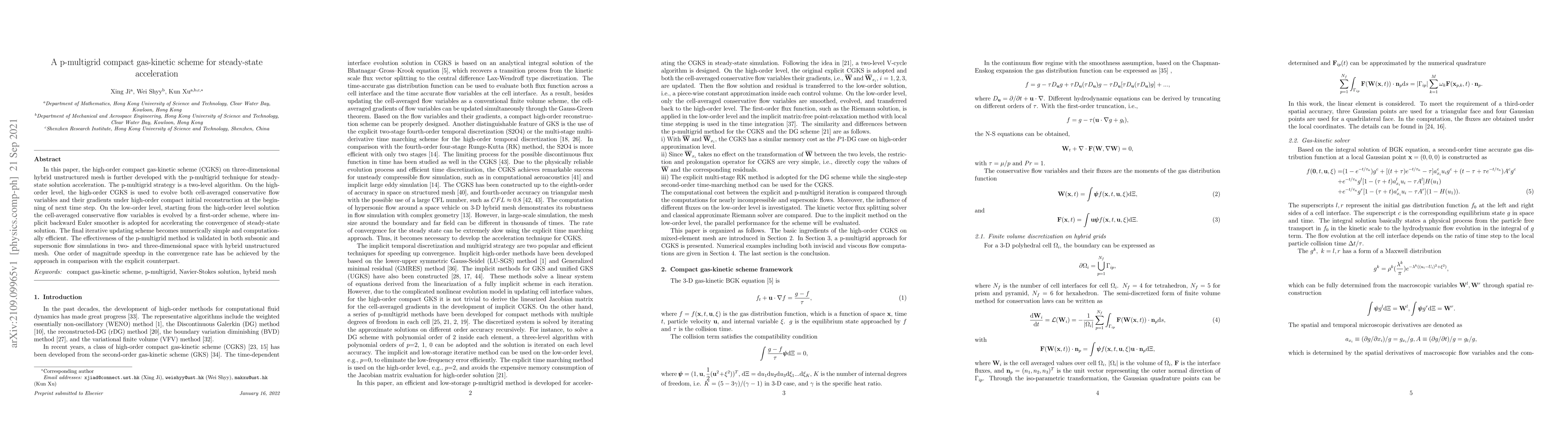 This paper develops a high-order p-multigrid compact gas-kinetic scheme on hybrid unstructured meshes to accelerate steady-state solution convergence. The p-multigrid technique combines high-order and first-order schemes, achieving a significant speedup in convergence rates compared to explicit methods.