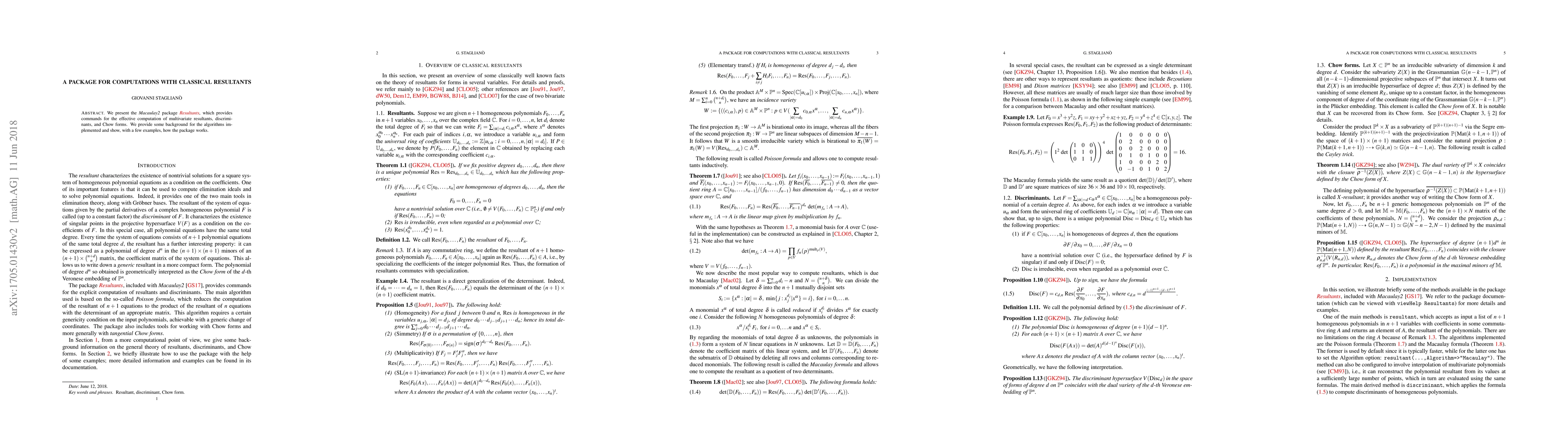 Summary: The Macaulay2 package Resultants facilitates the computation of multivariate resultants, discriminants, and Chow forms, offering practical examples to illustrate its functionality and underlying algorithmic methods.