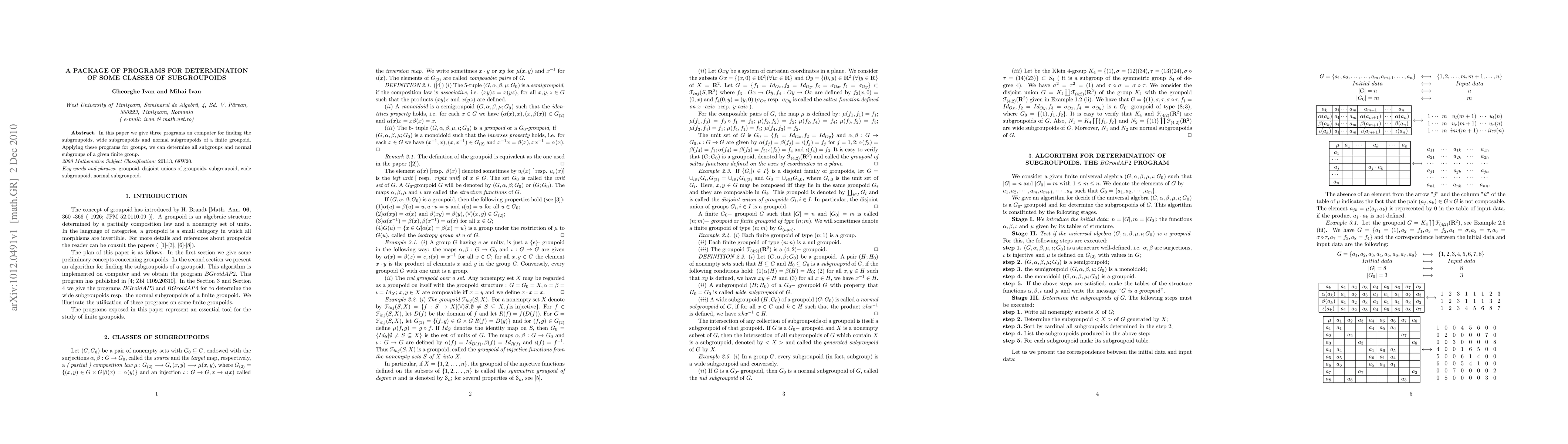 Summary: This paper presents three computer programs designed to identify subgroupoids, wide subgroupoids, and normal subgroupoids within a finite groupoid. The tools aim to facilitate the computational analysis of groupoid structures.