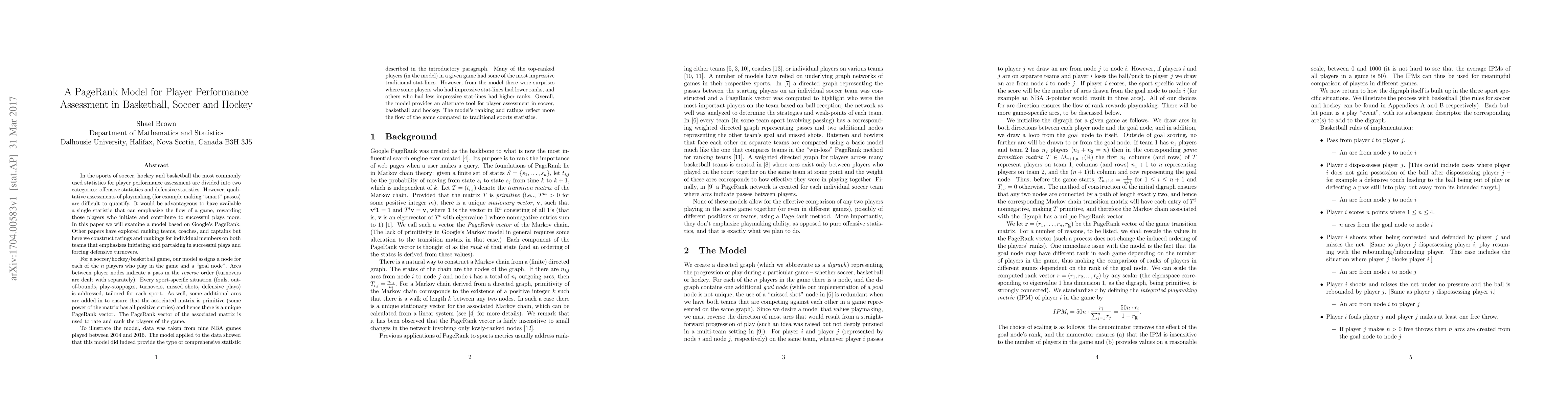 A new PageRank model assesses player performance in soccer, hockey, and basketball, ranking players based on their contributions to successful plays and defensive turnovers, offering a more nuanced view of game flow than traditional statistics.