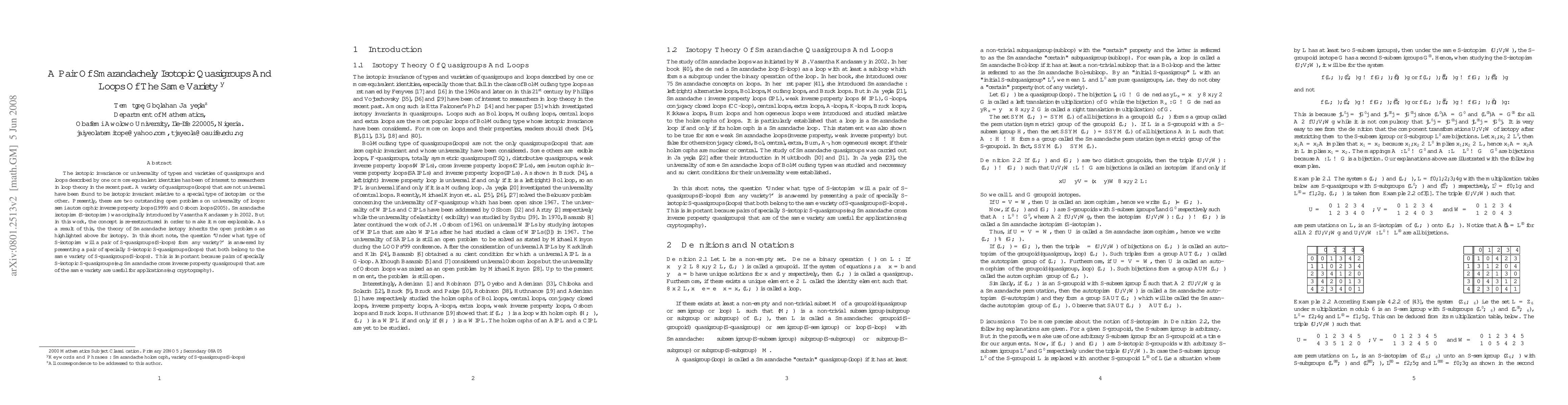 This paper explores the concept of Smarandache isotopy and demonstrates a pair of Smarandache isotopic quasigroups and loops that belong to the same variety, addressing an open problem in loop theory. The findings are significant for applications such as cryptography.