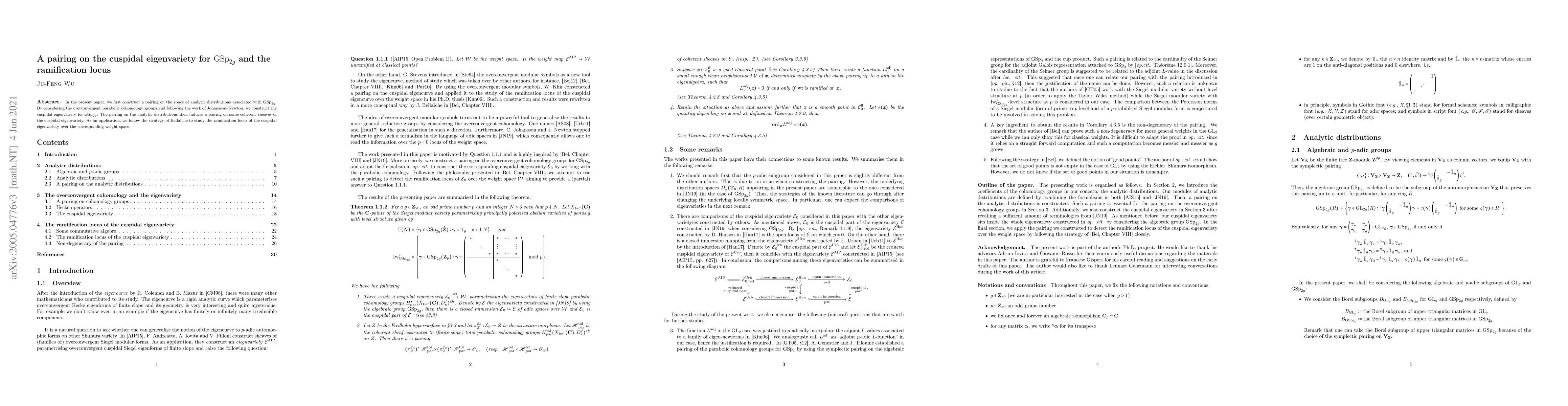 This paper constructs a pairing on the cuspidal eigenvariety for $\mathrm{GSp}_{2g}$ using overconvergent parabolic cohomology and analytic distributions. It then applies this pairing to study the ramification locus of the cuspidal eigenvariety over the weight space, following Bella\"{i}che's strategy.