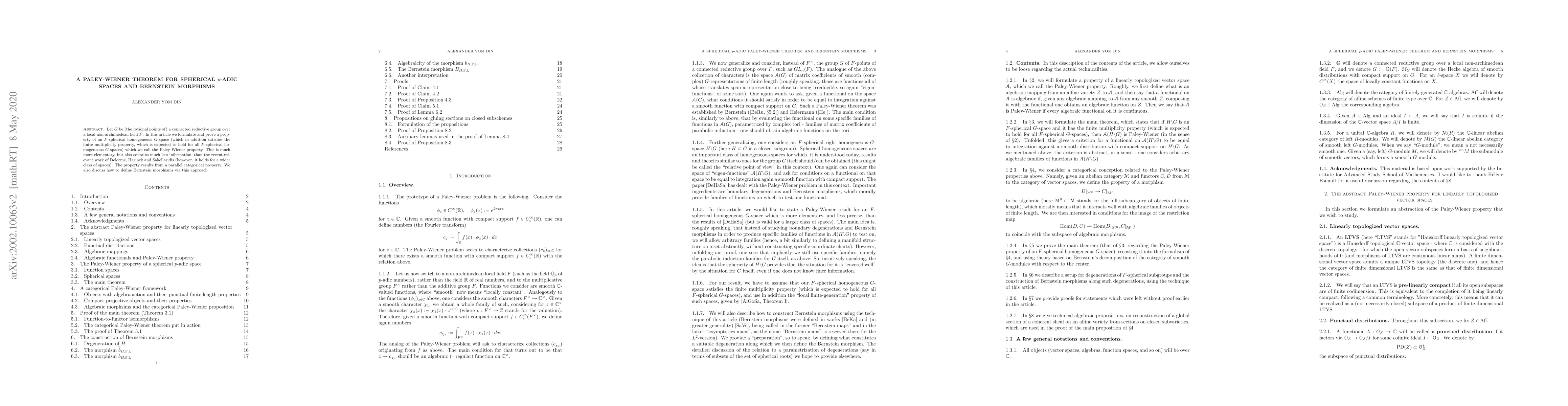 This paper formulates and proves a Paley-Wiener theorem for $F$-spherical homogeneous $G$-spaces over a local non-archimedean field, extending the work of Delorme, Harinck, and Sakellaridis for a broader class. It also introduces a method to define Bernstein morphisms through this new categorical approach.
