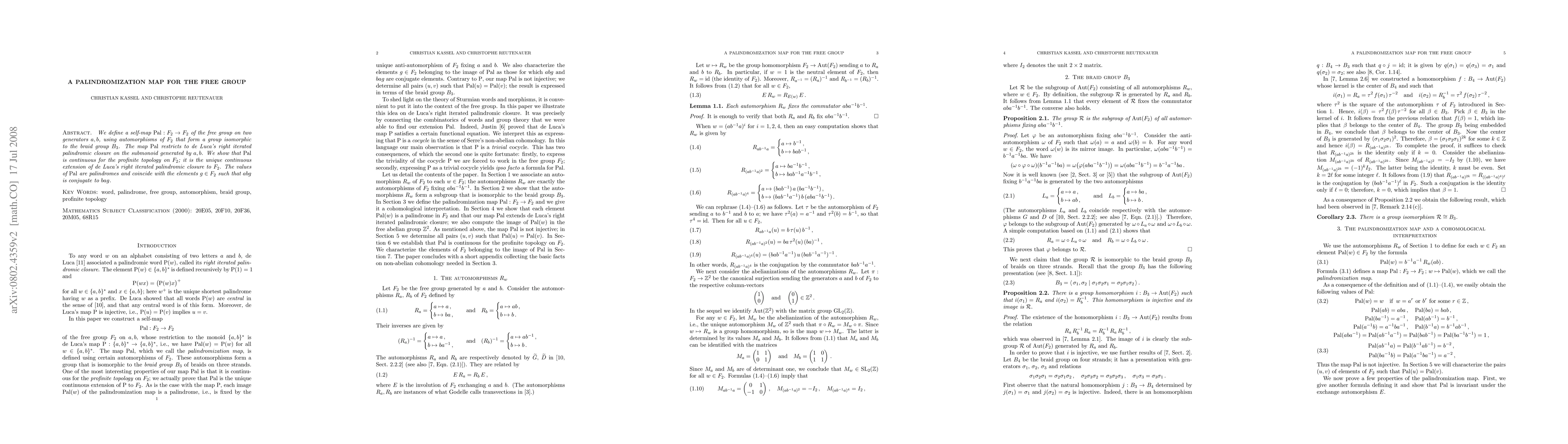 A new map called Pal is introduced for the free group on two generators, mapping to a palindrome in the group that relates to conjugacy of certain elements. This map coincides with De Luca's right iterated palindromic closure and has implications for understanding the structure of the free group.