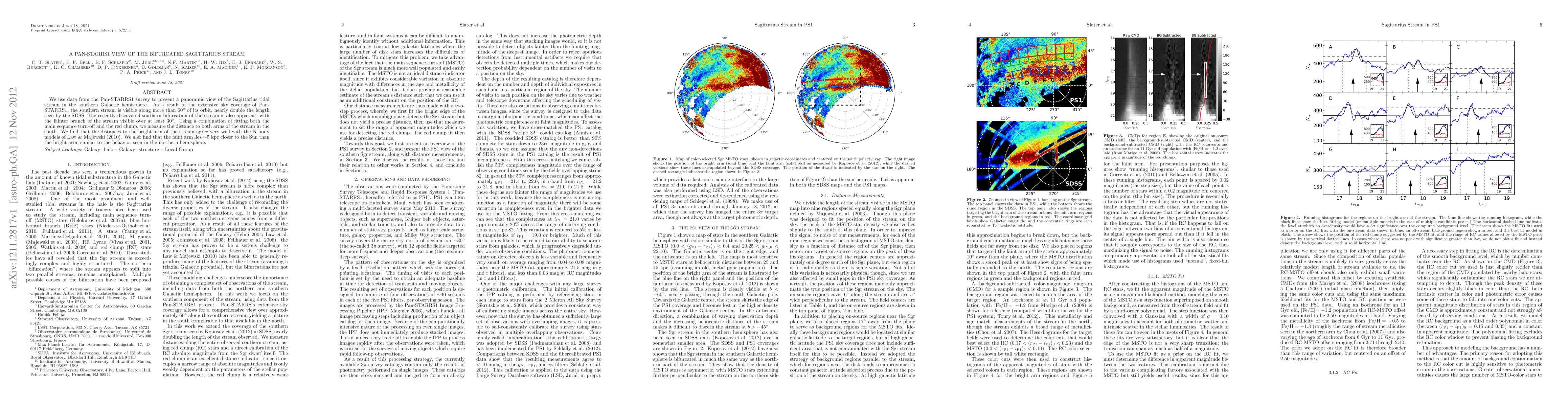 This paper utilizes Pan-STARRS1 survey data to provide a comprehensive view of the Sagittarius tidal stream, revealing its southern bifurcation over 30 degrees. The study confirms the stream's bright arm's distance aligns with N-body models, while the faint arm is found to be approximately 5 kpc closer to the Sun than the bright arm.