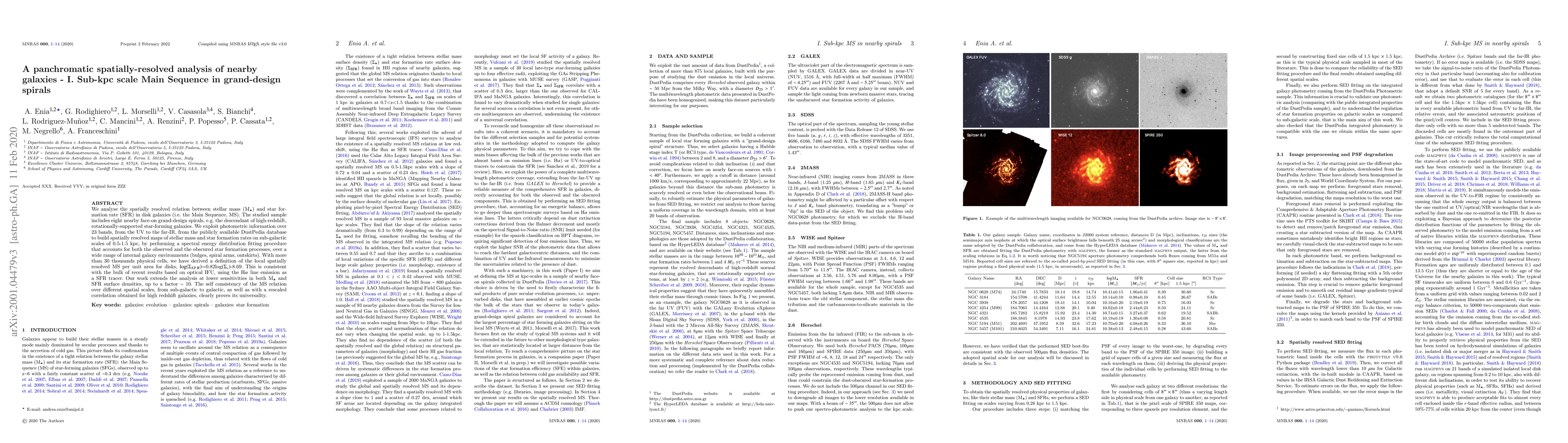 We analyse the spatially resolved relation between stellar mass (M$_{\star}$) and star formation rate (SFR) in disk galaxies (i.e. the Main Sequence, MS). The studied sample includes eight nearby face-on grand-design spirals, e.g. the descendant of high-redshift, rotationally-supported star-forming galaxies. We exploit photometric information over 23 bands, from the UV to the far-IR, from the publicly available DustPedia database to build spatially resolved maps of stellar mass and star formation rates on sub-galactic scales of 0.5-1.5 kpc, by performing a spectral energy distribution fitting procedure that accounts for both the observed and the obscured star formation processes, over a wide range of internal galaxy environments (bulges, spiral arms, outskirts). With more than 30 thousands physical cells, we have derived a definition of the local spatially resolved MS per unit area for disks, $\log(\Sigma_{SFR})$=0.82log$(\Sigma_{*})$-8.69. This is consistent with the bulk of recent results based on optical IFU, using the H$\alpha$ line emission as a SFR tracer. Our work extends the analysis at lower sensitivities in both M$_{\star}$ and SFR surface densities, up to a factor $\sim$ 10. The self consistency of the MS relation over different spatial scales, from sub-galactic to galactic, as well as with a rescaled correlation obtained for high redshift galaxies, clearly proves its universality.