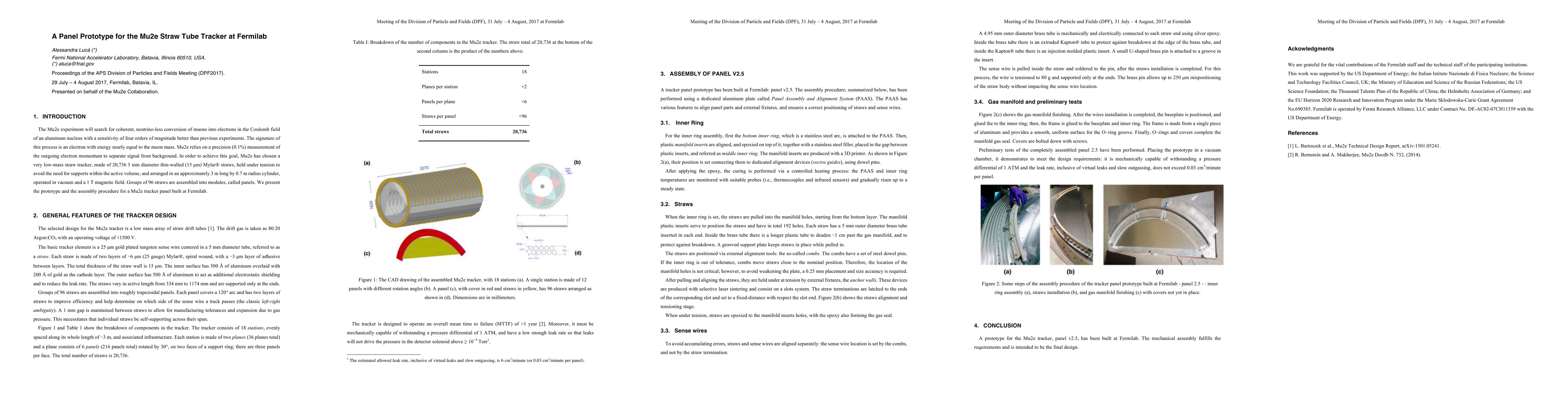 The Mu2e experiment will search for coherent, neutrino-less conversion of muons into electrons in the Coulomb field of an aluminum nucleus with a sensitivity of four orders of magnitude better than previous experiments. The signature of this process is an electron with energy nearly equal to the muon mass. Mu2e relies on a precision (0.1%) measurement of the outgoing electron momentum to separate signal from background. In order to achieve this goal, Mu2e has chosen a very low-mass straw tracker, made of 20,736 5 mm diameter thin-walled (15 $\mu$m) Mylar straws, held under tension to avoid the need for supports within the active volume, and arranged in an approximately 3 m long by 0.7 m radius cylinder, operated in vacuum and a 1 T magnetic field. Groups of 96 straws are assembled into modules, called panels. We present the prototype and the assembly procedure for a Mu2e tracker panel built at Fermilab