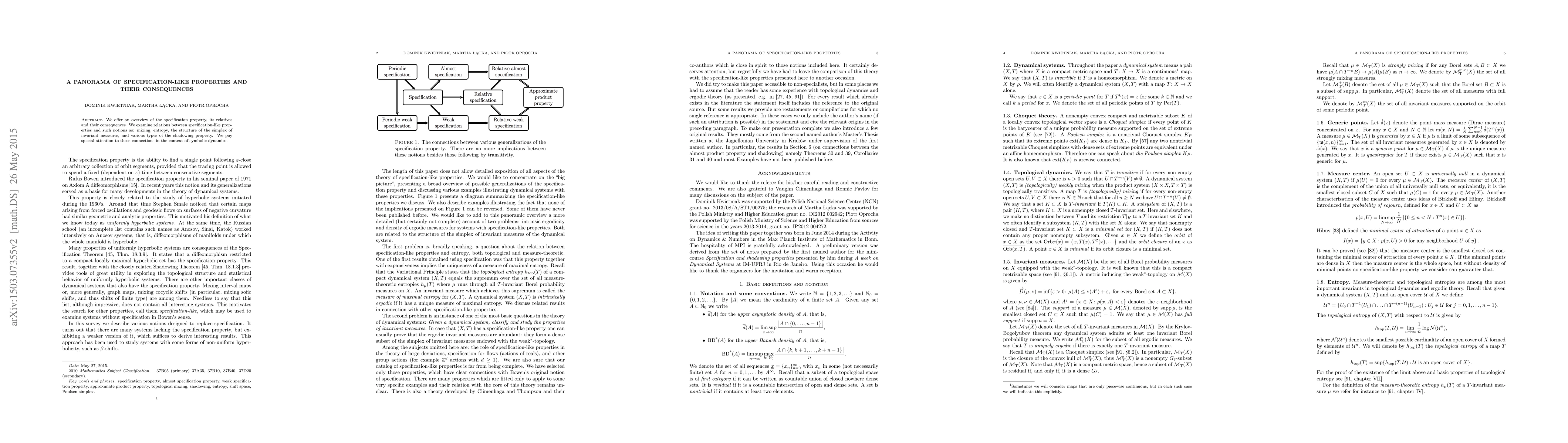 We offer an overview of the specification property, its relatives and their consequences. We examine relations between specification-like properties and such notions as: mixing, entropy, the structure of the simplex of invariant measures, and various types of the shadowing property. We pay special attention to these connections in the context of symbolic dynamics.
