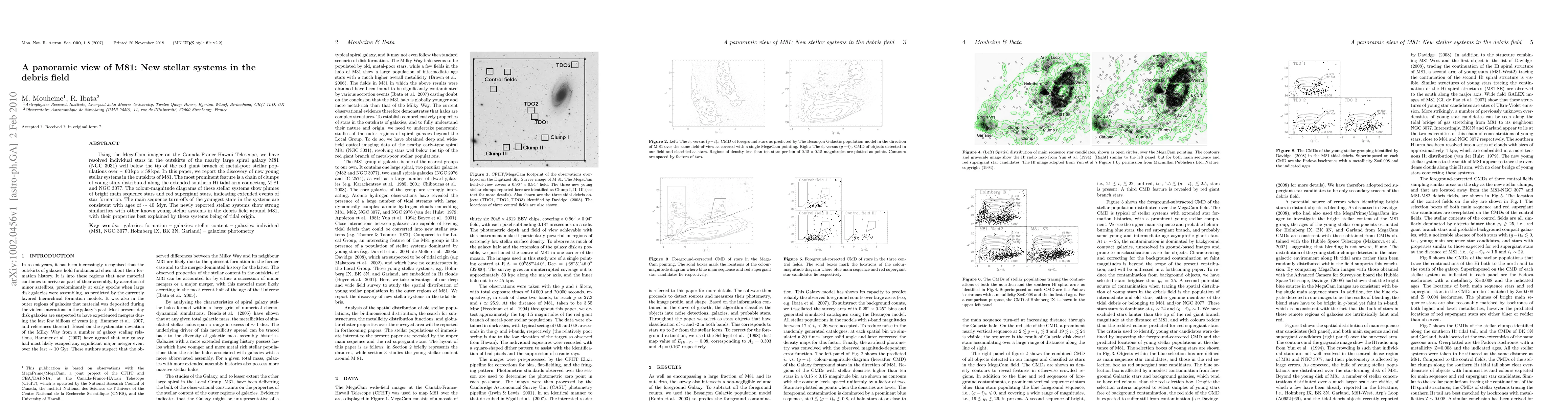 The research paper presents the discovery of new young stellar systems in the outskirts of the nearby spiral galaxy M81 using the Canada-France-Hawaii Telescope's MegaCam imager. These systems, resembling tidal debris, are characterized by chains of young star clumps along the extended southern HI tidal arm connecting M81 and NGC 3077. The systems display main sequence turn-offs consistent with ages around 40 Myr, indicating recent star formation events.