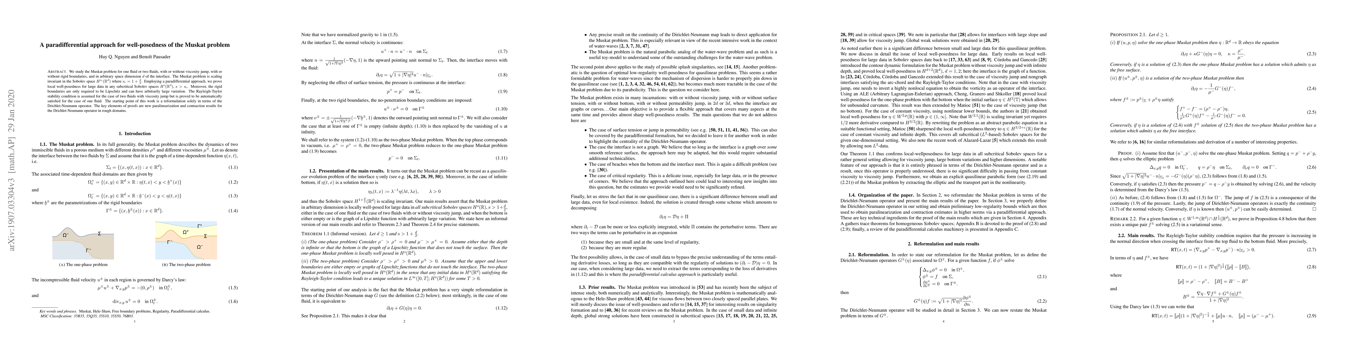 This paper employs a paradifferential approach to prove local well-posedness for the Muskat problem in various configurations, including one or two fluids, with or without viscosity jumps, and in any space dimension. The study reformulates the problem using the Dirichlet-Neumann operator and introduces new paralinearization and contraction results for rough domains.