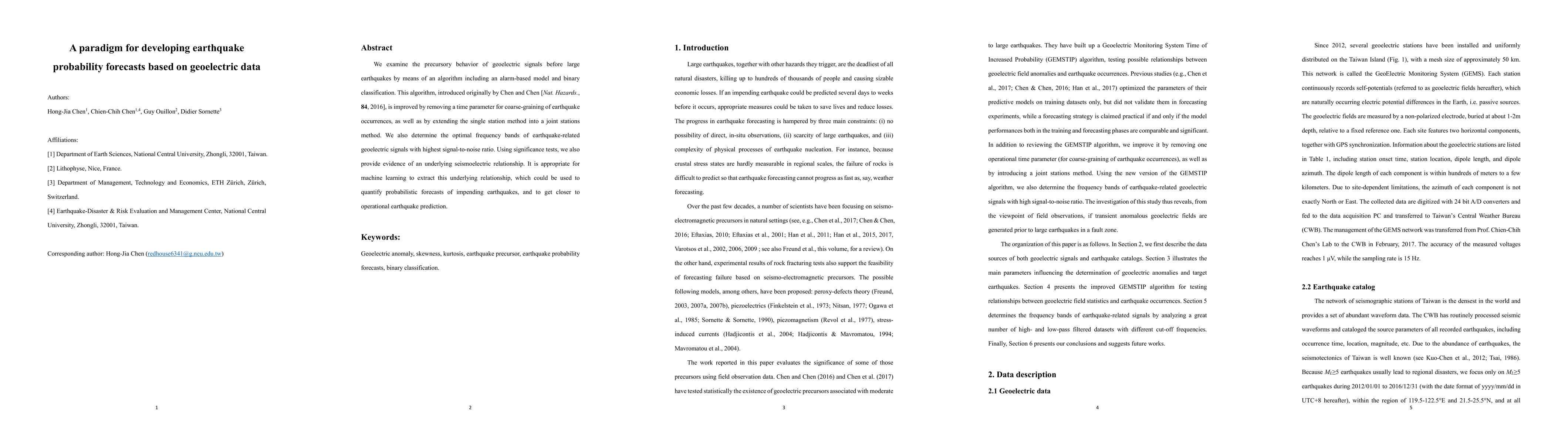 We examine the precursory behavior of geoelectric signals before large earthquakes by means of an algorithm including an alarm-based model and binary classification. This algorithm, introduced originally by Chen and Chen [Nat. Hazards., 84, 2016], is improved by removing a time parameter for coarse-graining of earthquake occurrences, as well as by extending the single station method into a joint stations method. We also determine the optimal frequency bands of earthquake-related geoelectric signals with the highest signal-to-noise ratio. Using significance tests, we also provide evidence of an underlying seismoelectric relationship. It is appropriate for machine learning to extract this underlying relationship, which could be used to quantify probabilistic forecasts of impending earthquakes, and to get closer to operational earthquake prediction.