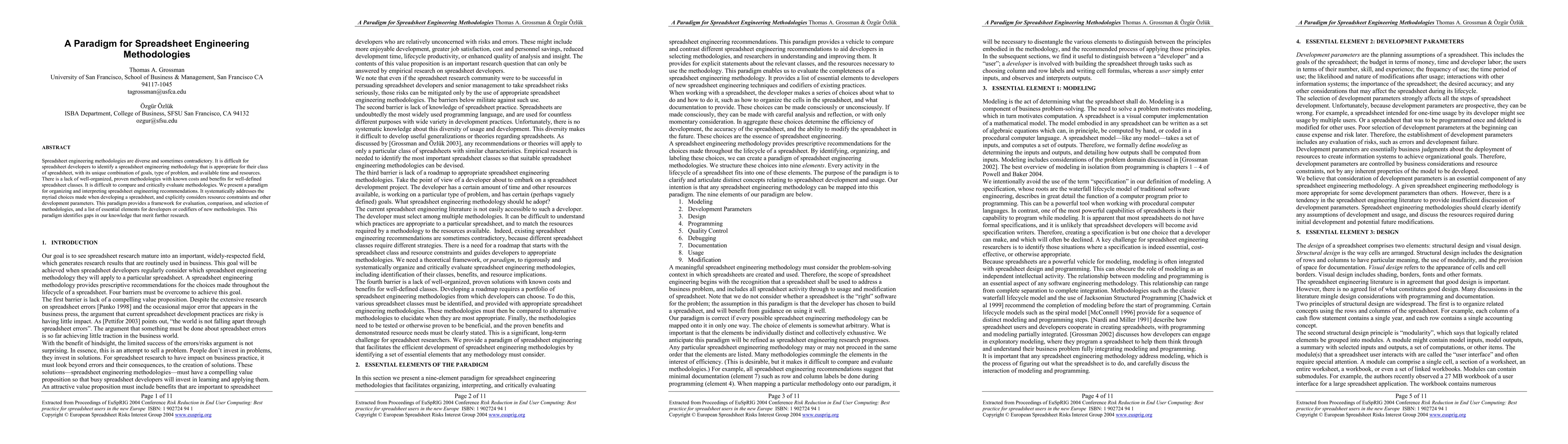 This paper introduces a paradigm for organizing spreadsheet engineering methodologies, aiming to systematically address the diverse choices in spreadsheet development, considering resource constraints, and providing a framework for evaluating and comparing methodologies. It identifies gaps in current knowledge that require further research.