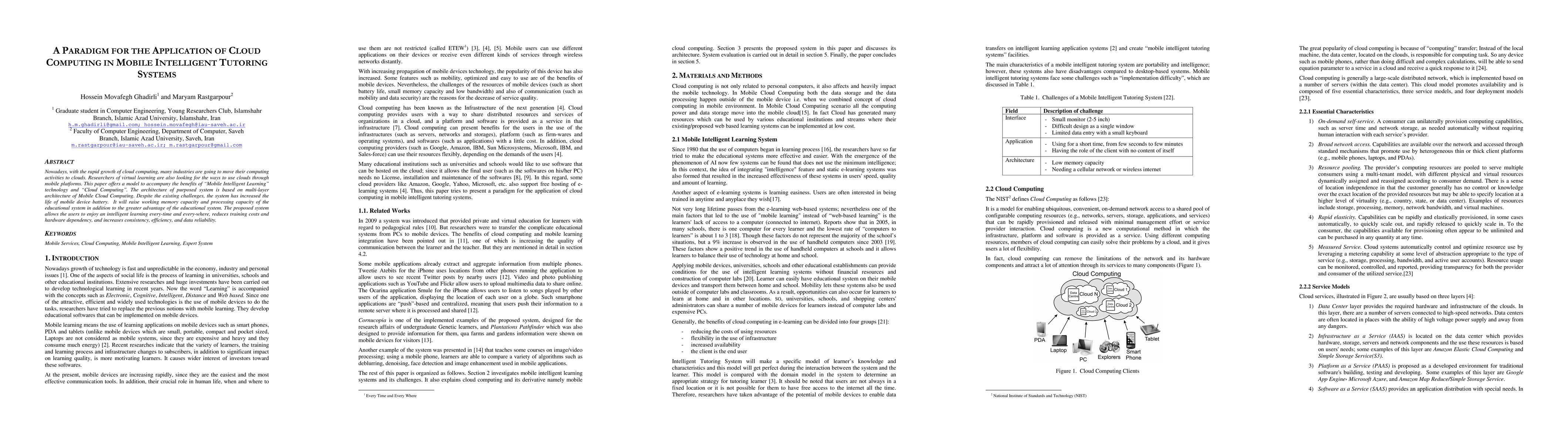 This paper proposes a multi-layer architecture for mobile intelligent tutoring systems leveraging cloud computing to enhance educational efficiency and reduce costs. The system improves battery life, working memory, and processing capacity while enabling ubiquitous intelligent learning.