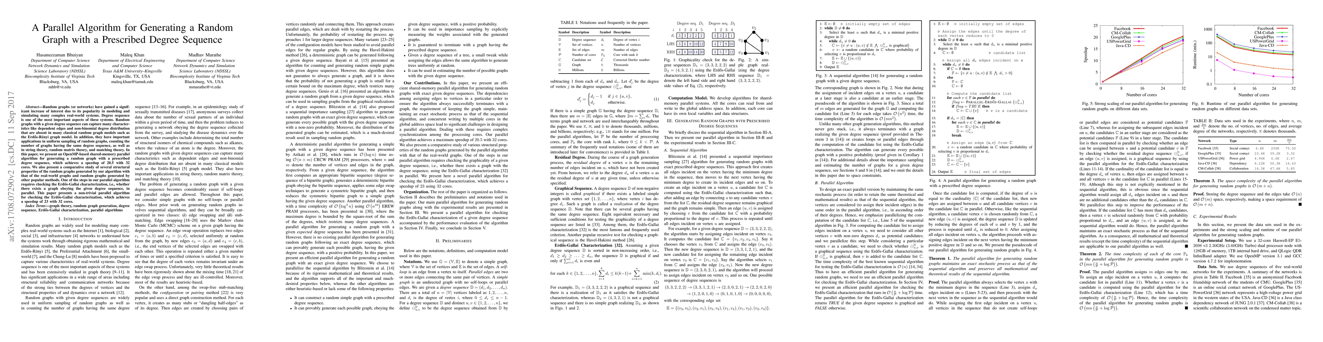 This paper introduces an OpenMP-based parallel algorithm for generating random graphs with a prescribed degree sequence, achieving a 20.5x speedup with 32 cores. It also presents the first non-trivial parallel method for checking the Erdős-Gallai characterization, achieving a 23x speedup with 32 cores, enhancing the efficiency of generating complex graphs for various applications.