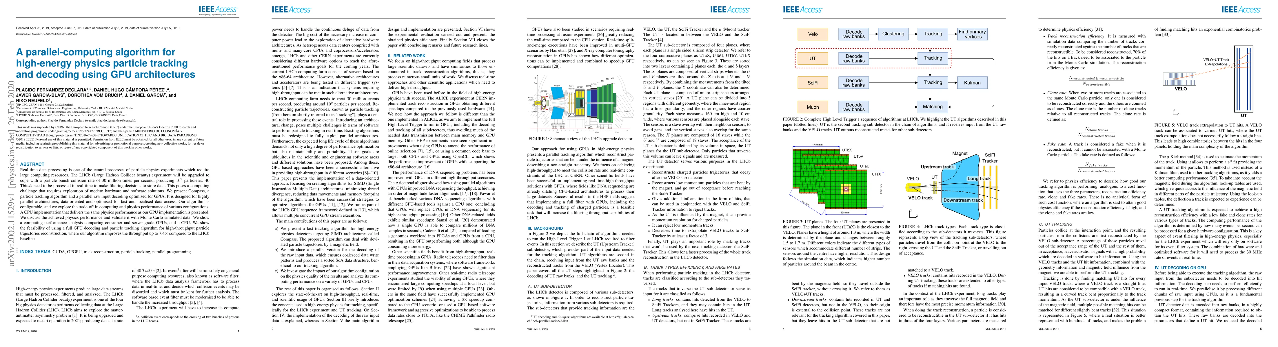 This paper presents Compass, a parallel-computing algorithm optimized for GPU architectures to track and decode particles in high-energy physics experiments, significantly improving the throughput up to 7.4× compared to the LHCb baseline. The algorithm is validated with Monte Carlo simulations and demonstrates superior performance using both consumer and server-grade GPUs.