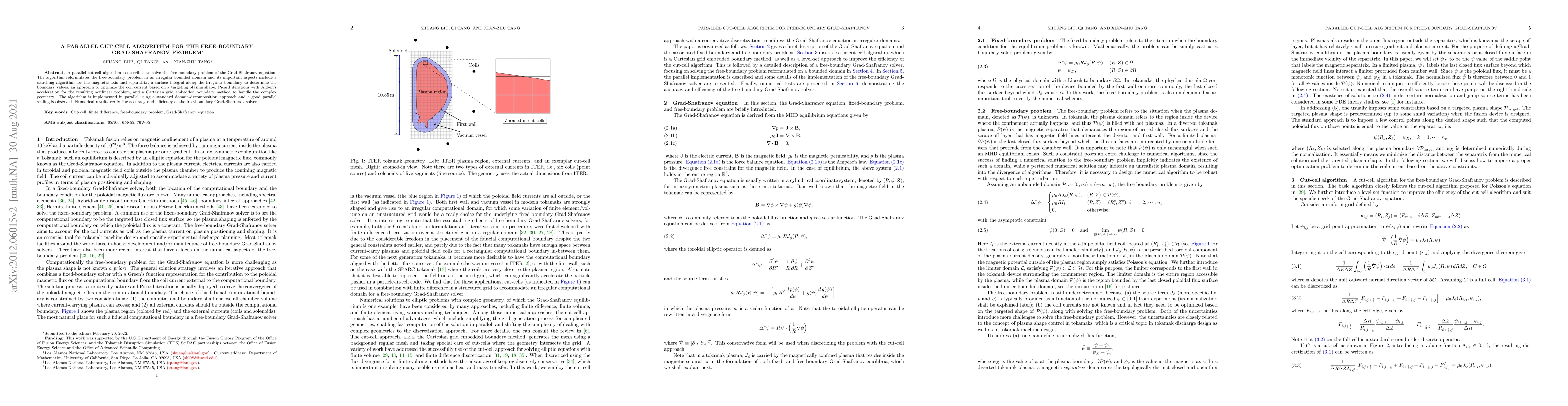 This paper presents a parallel cut-cell algorithm to solve the free-boundary Grad-Shafranov problem, featuring a method for optimizing coil current and employing parallel domain decomposition for efficient computation. Numerical results demonstrate the solver's accuracy and scalability.