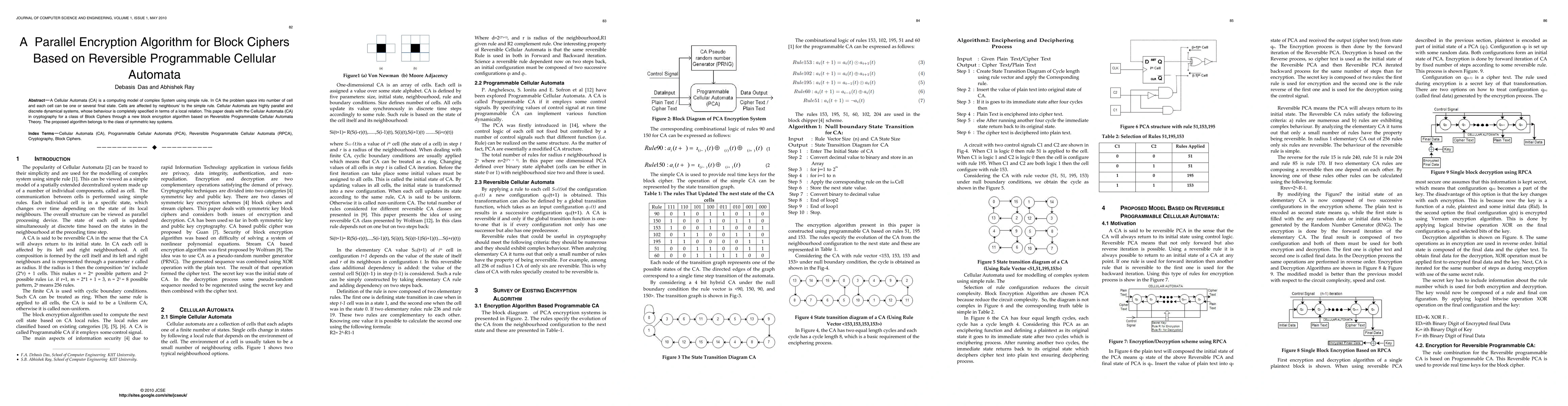 This paper introduces a parallel encryption algorithm for block ciphers based on reversible programmable cellular automata, leveraging the highly parallel nature of cellular automata to enhance cryptographic security within symmetric key systems. The proposed algorithm utilizes the local relation and reversible properties of cellular automata to achieve efficient and secure encryption.