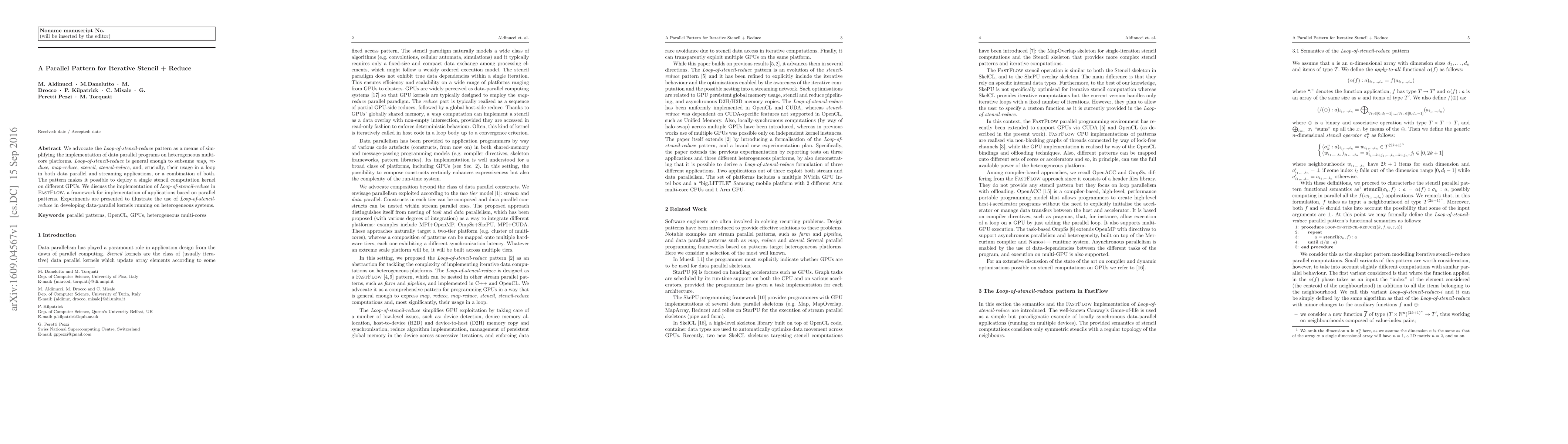 Researchers propose a pattern called Loop-of-stencil-reduce to simplify data-parallel program implementation on heterogeneous multi-core platforms. This pattern enables deployment of a single stencil computation kernel on different GPUs.