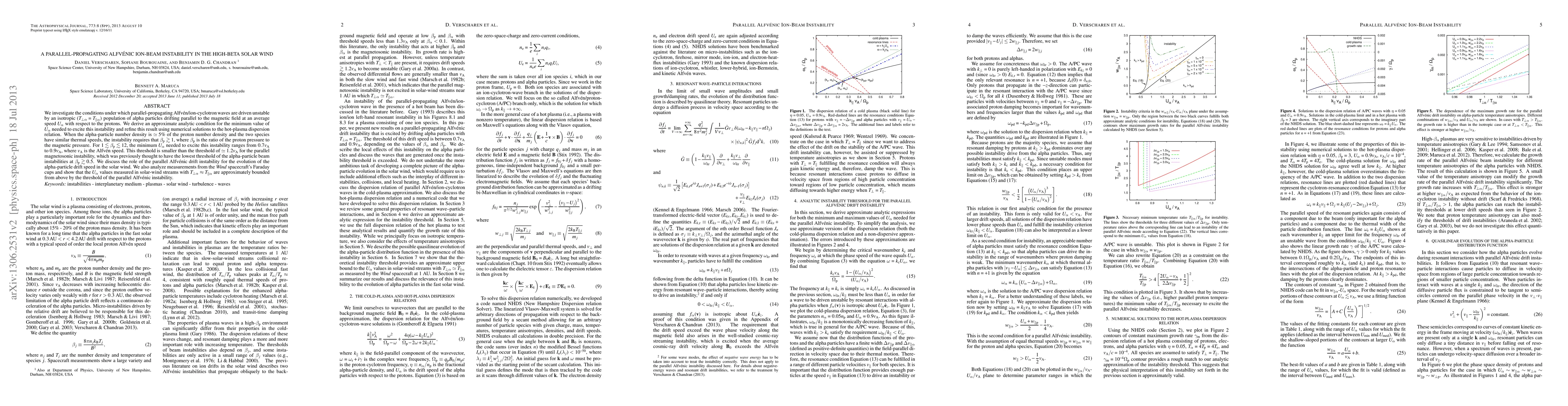 This paper investigates the parallel-propagating Alfvénic ion-beam instability driven by isotropic alpha particles in the high-beta solar wind, deriving a lower threshold for the instability's excitation compared to previous magnetosonic models. The study finds that the instability requires a minimum drift speed of 0.7 to 0.9 times the Alfvén speed for beta values between 1 and 12.