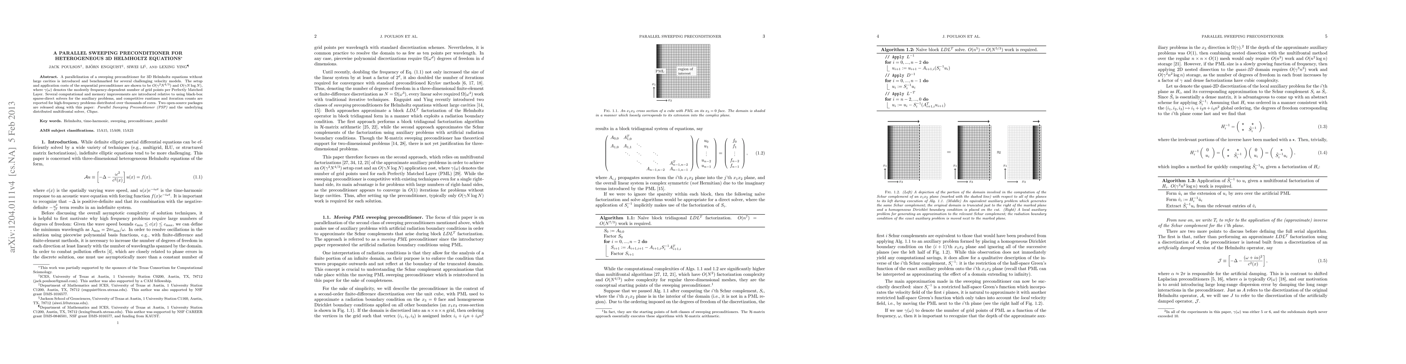 This paper introduces a parallelized sweeping preconditioner for solving 3D Helmholtz equations, demonstrating significant computational and memory improvements over direct solvers. It reports competitive runtimes and iteration counts on thousands of cores, alongside the release of two open-source packages: "Parallel Sweeping Preconditioner (PSP)" and "Clique".