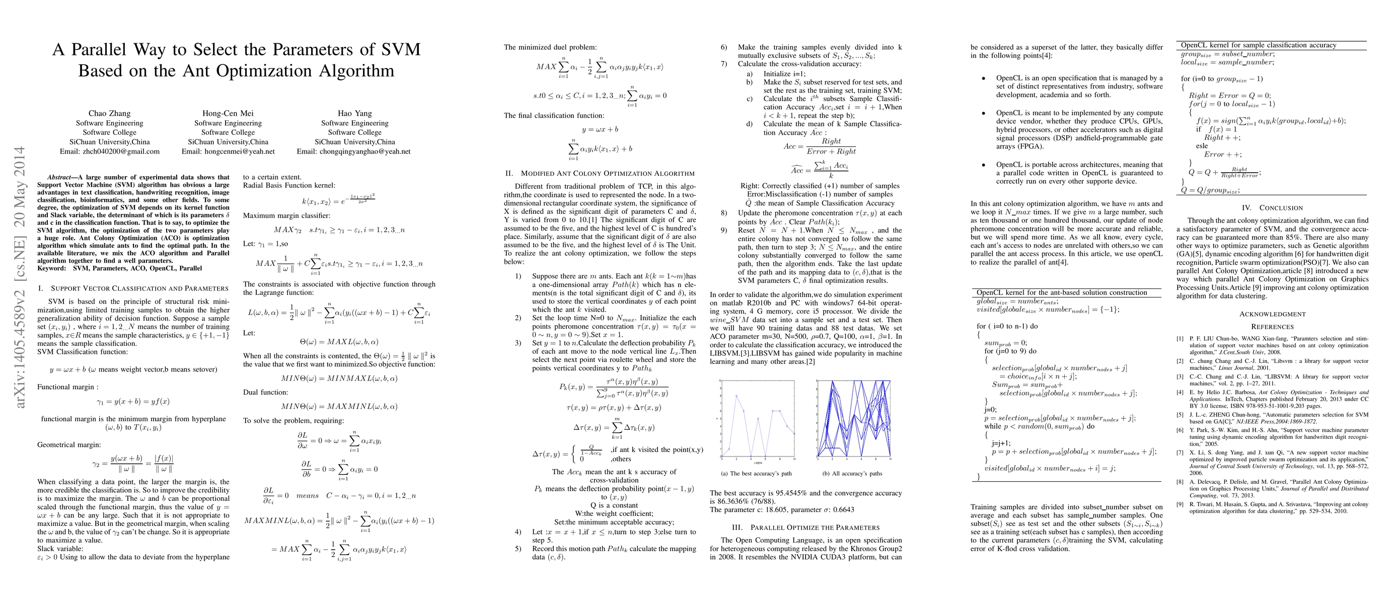 This paper proposes using Ant Colony Optimization to optimize SVM parameters in various fields, showing promising results with improved classification accuracy.