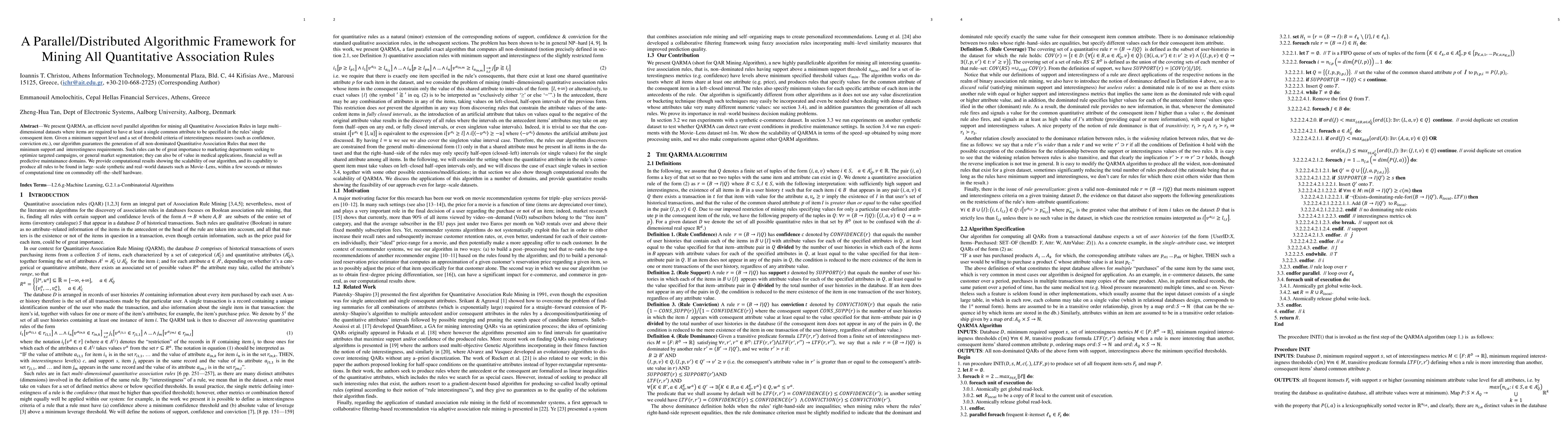 QARMA is a novel parallel algorithm designed to efficiently mine all quantitative association rules from large multidimensional datasets. It guarantees the generation of all non-dominated rules meeting specified support and interestingness criteria, demonstrating scalability and effectiveness on synthetic and real-world datasets.