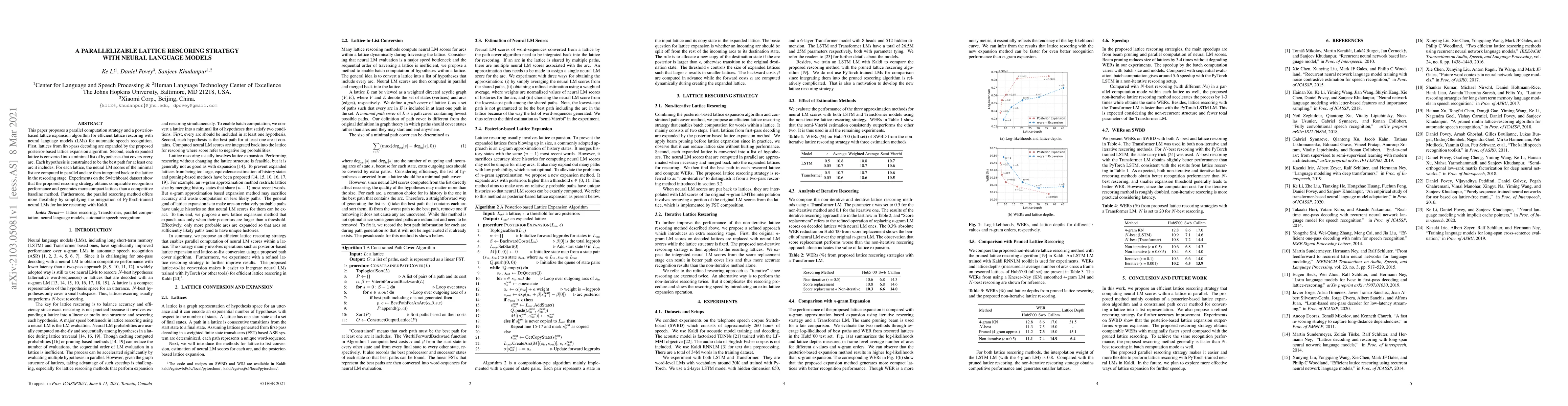 This paper introduces a parallelizable lattice rescoring strategy using neural language models, which employs a posterior-based lattice expansion and parallel computation to enhance automatic speech recognition performance. The method achieves comparable recognition results and more compact lattices compared to baseline methods.