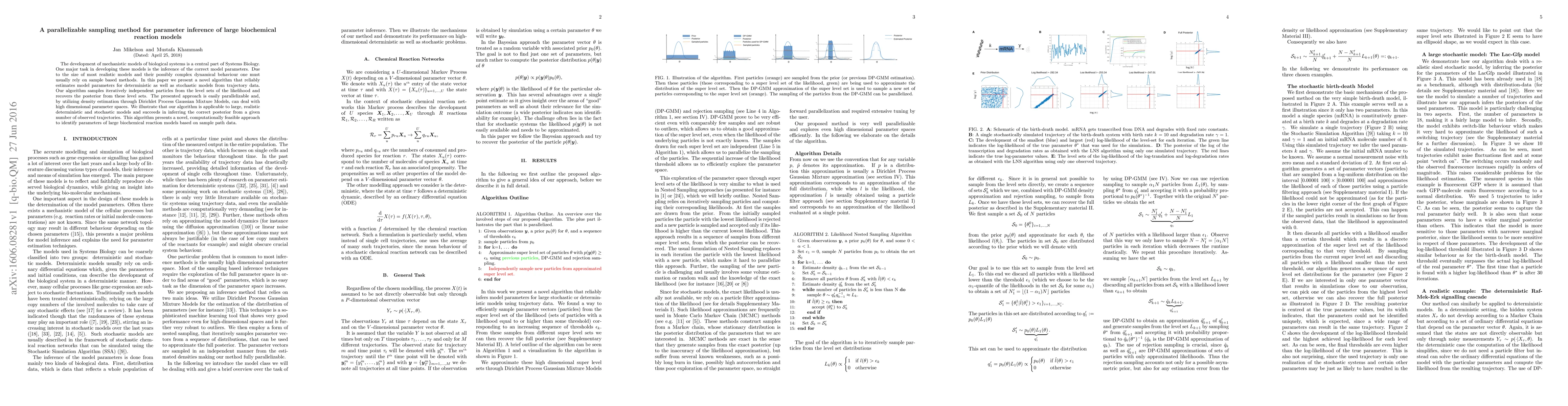 The development of mechanistic models of biological systems is a central part of Systems Biology. One major task in developing these models is the inference of the correct model parameters. Due to the size of most realistic models and their possibly complex dynamical behaviour one must usually rely on sample based methods. In this paper we present a novel algorithm that reliably estimates model parameters for deterministic as well as stochastic models from trajectory data. Our algorithm samples iteratively independent particles from the level sets of the likelihood and recovers the posterior from these level sets. The presented approach is easily parallelizable and, by utilizing density estimation through Dirichlet Process Gaussian Mixture Models, can deal with high dimensional parameter spaces. We illustrate that our algorithm is applicable to large, realistic deterministic and stochastic models and succeeds in inferring the correct posterior from a given number of observed trajectories. This algorithm presents a novel, computationally feasible approach to identify parameters of large biochemical reaction models based on sample path data.