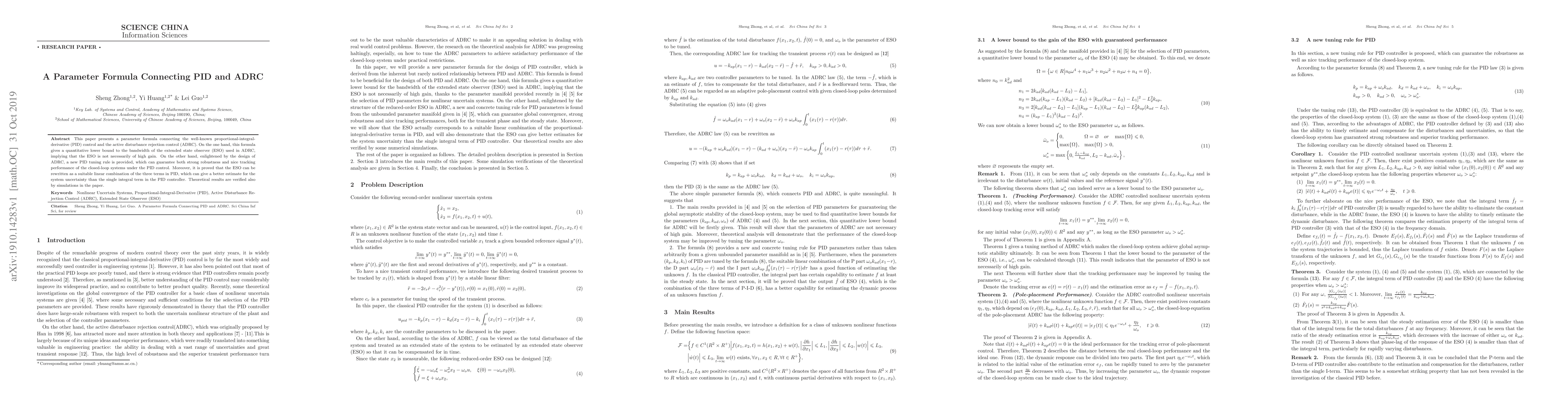 This paper establishes a parameter formula linking PID and ADRC control methods, providing a quantitative lower bound for the ADRC's extended state observer's bandwidth and a new PID tuning rule. It also demonstrates that the ESO can be expressed as a linear combination of PID terms, enhancing uncertainty estimation.